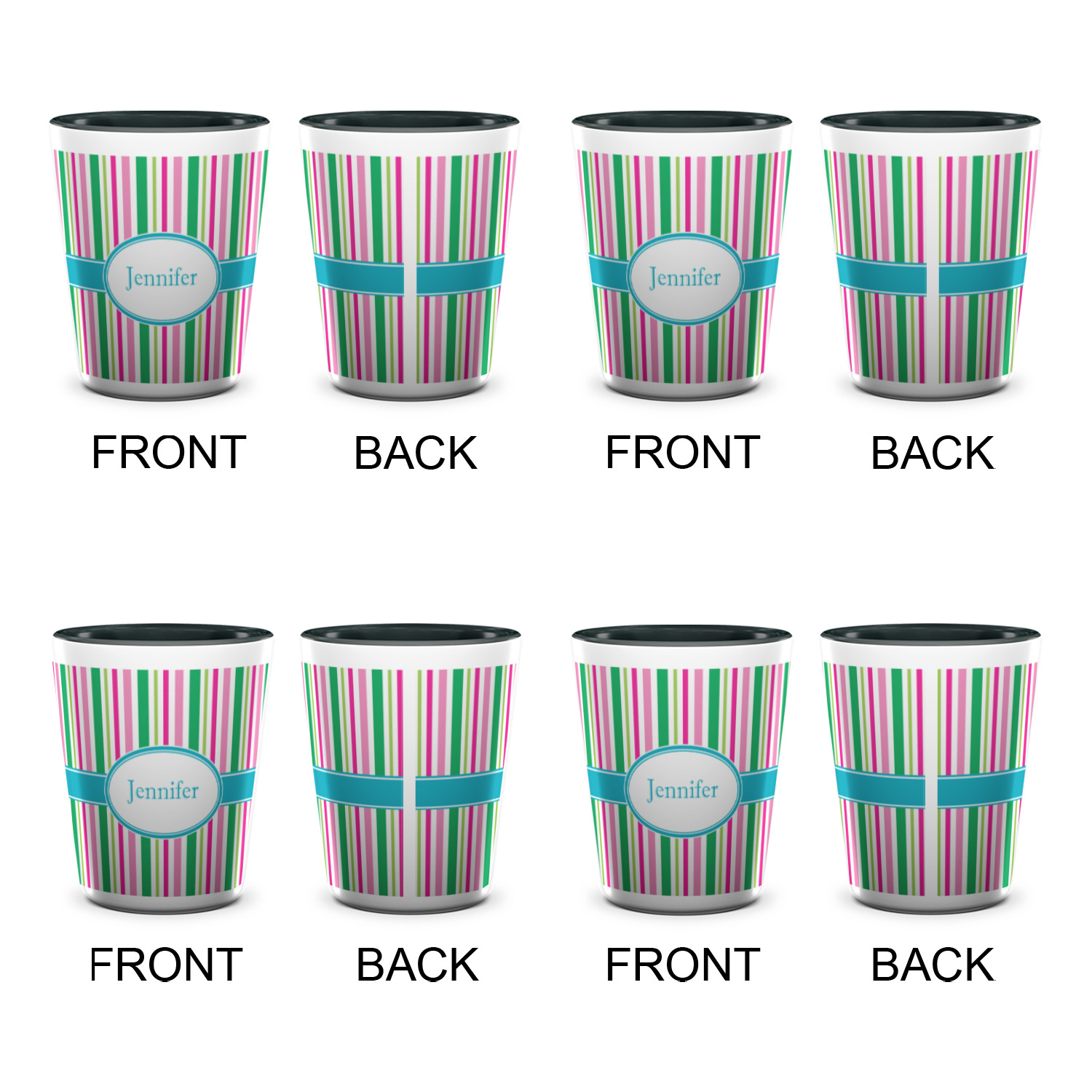 Made from ceramic these shot glasses are printed in full color with the design of your choice. These are a standard 1.5oz size and stand 2.25" tall. Available in a full white ceramic or a two-tone with a black color inside the shot glass. Buy a single or a set of 4, all of which can be designed separately to get you just what you want and need.