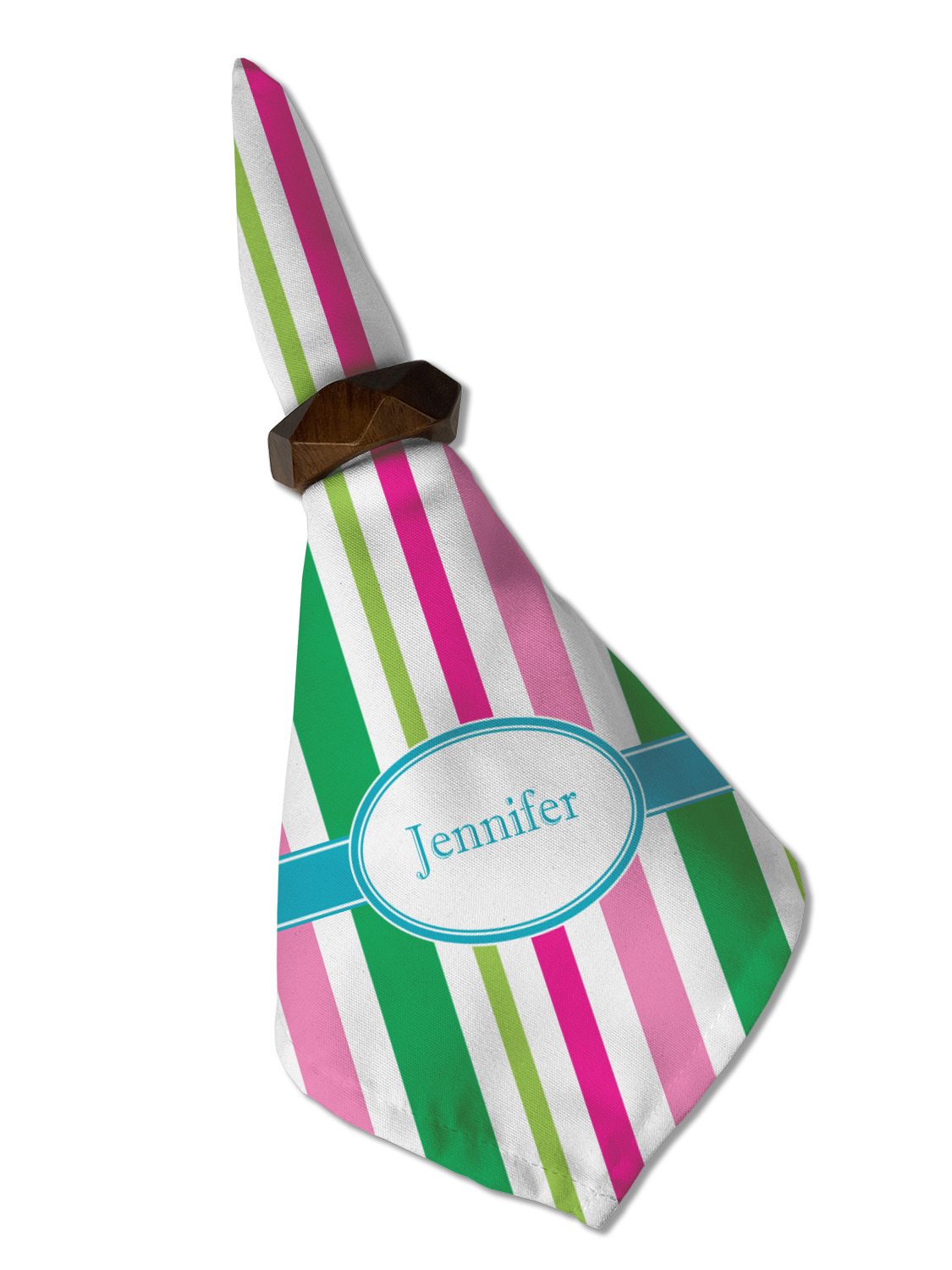 Each customizable cloth napkin is a polyester material guaranteed for long-term use. Since our napkins are cloth, it serves as a great reusable and eco-friendly dining decor. We sell personalized napkins individually or as a set of 4! Print your own unique design on all four napkins, or create four individual designs for each napkin! We offer two different napkin sizes - Cocktail napkins (approx. 10 x 10) and Dinner napkins (approx. 20 x 20). We print your design on one side, perfect for displaying your custom designed lunch napkins in any fold or table setting!