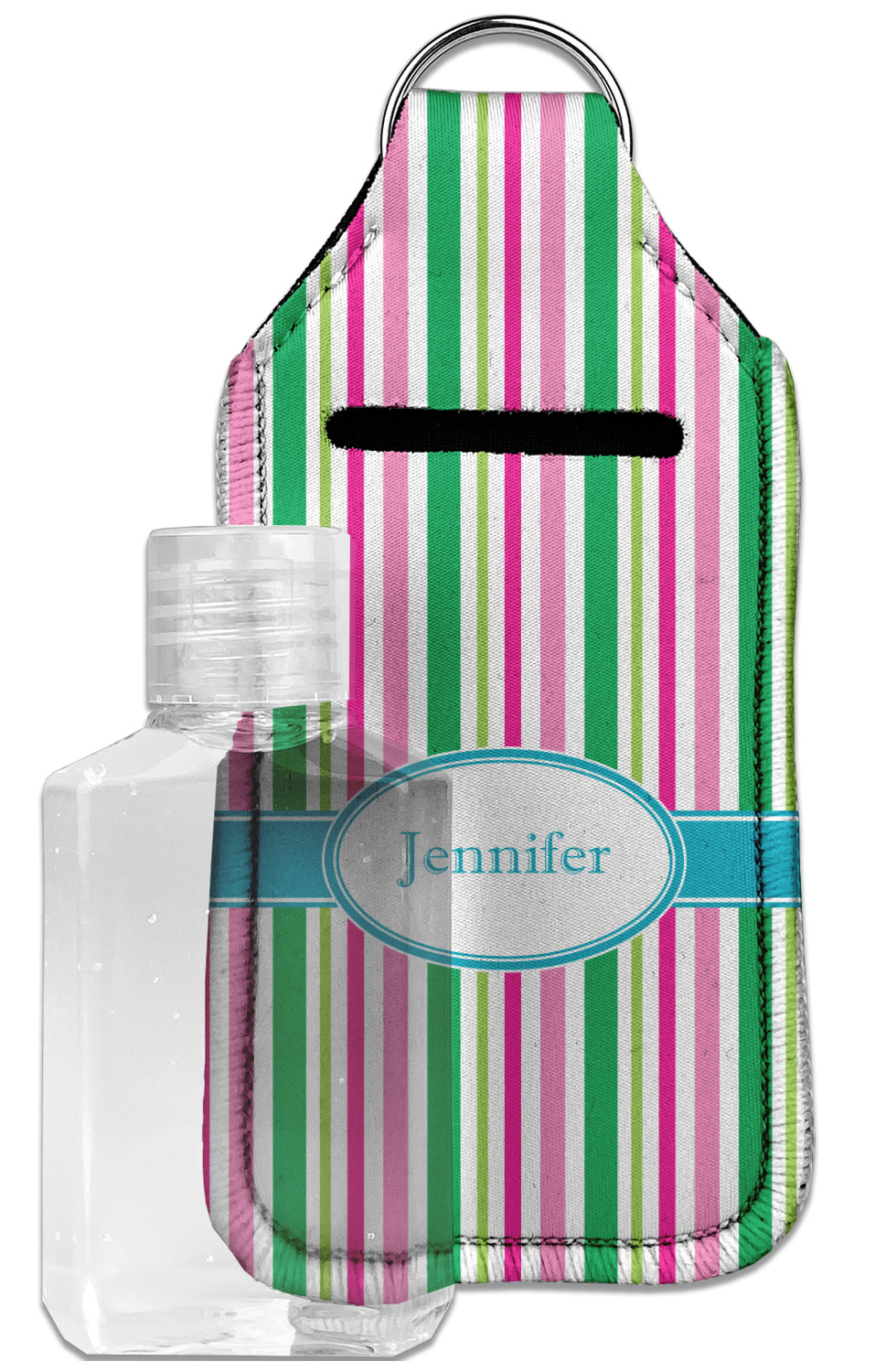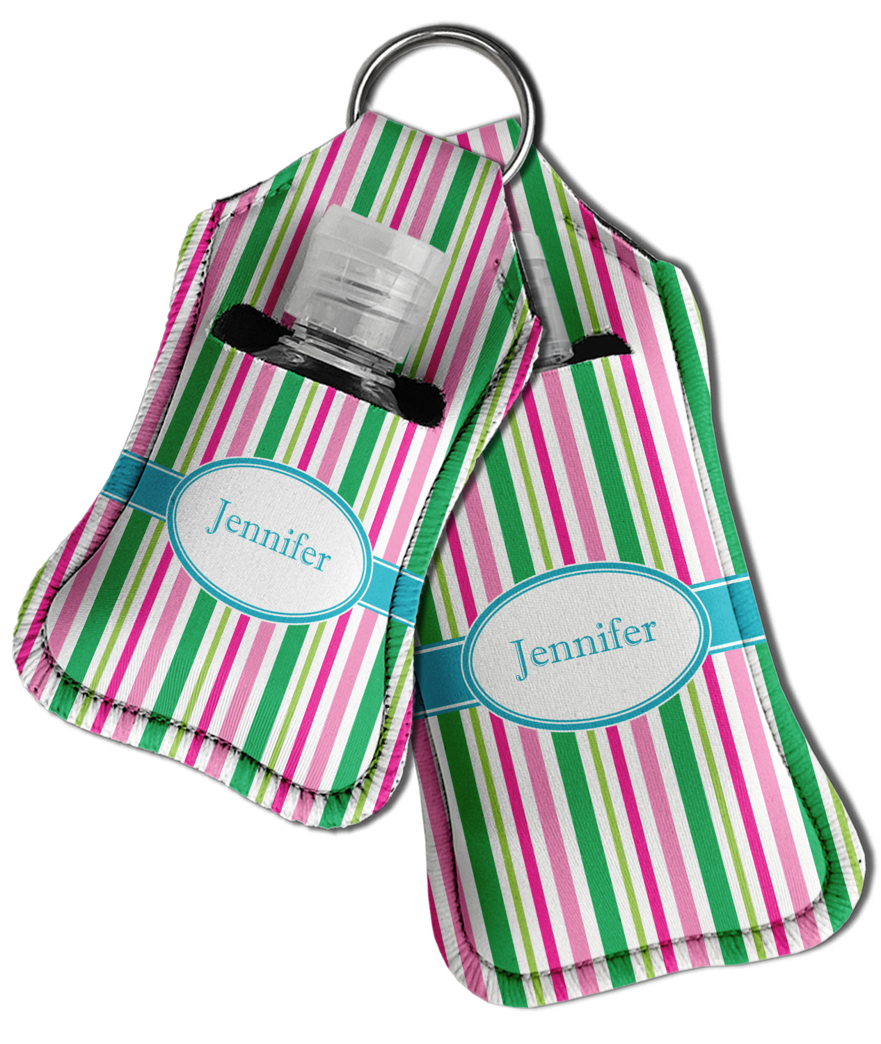 Each hand sanitizer holder comes with its own empty travel-sized, refillable hand sanitizer sure to fit snug in your customized sanitizer case! Our hand sanitizer cases are a durable, yet soft neoprene material sure to last any daily activities or travel agenda. Customize and personalize a hand sanitizer bottle holder with one of our two sizes - small (4.25" x 2.25") or large (5.5" x 2.5"). Each travel sanitizer holder comes with a keyring for attachment on bags, keys, or more!