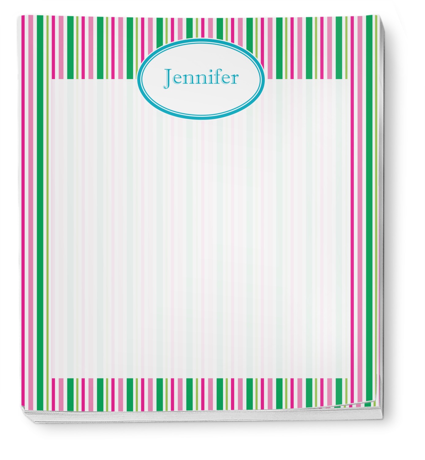 Your custom notepad features 50 sheets of thick, white paper, with your customization in the background and the edges. At approximately 6" x 5.5", these personalized memo pads are slightly larger than your average notepad. The individual notes tear easily from binding, which allows for quick, convenient, note-taking.