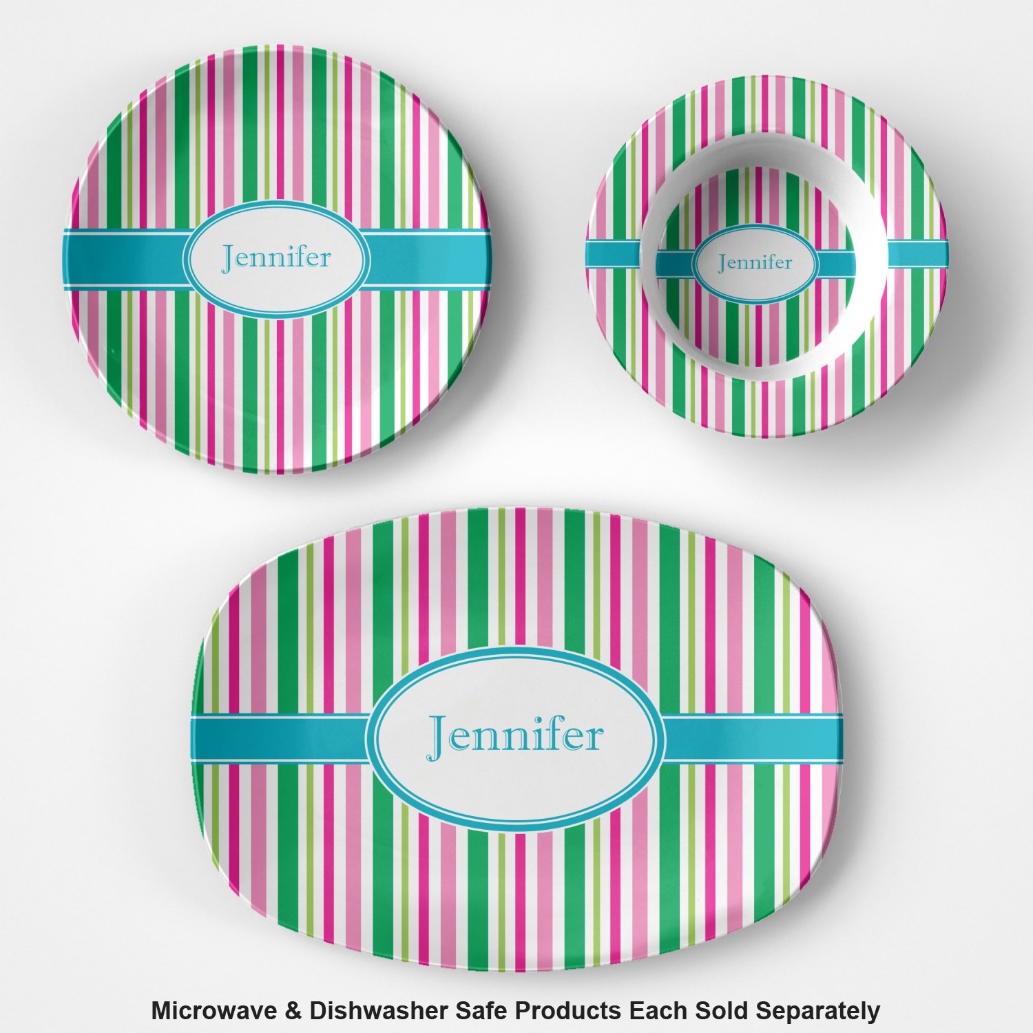 These serving platters are made from a composite, thermo-set, polymer plastic that gives it the versatility, durability, and weight of a melamine platter, without any of the downsides of melamine. These personalized platters, can withstand temperatures up to 250 degrees Fahrenheit, for up to 60 minutes. No harmful chemicals, such as BPA, formaldehyde, and DEHPs were used in the manufacturing of this product. This large serving platter measures at 14" x 10.25", and is spacious enough to hold any of your appetizers or bite-sized desserts. The platter exhibits your personalization across the entirety of its front.