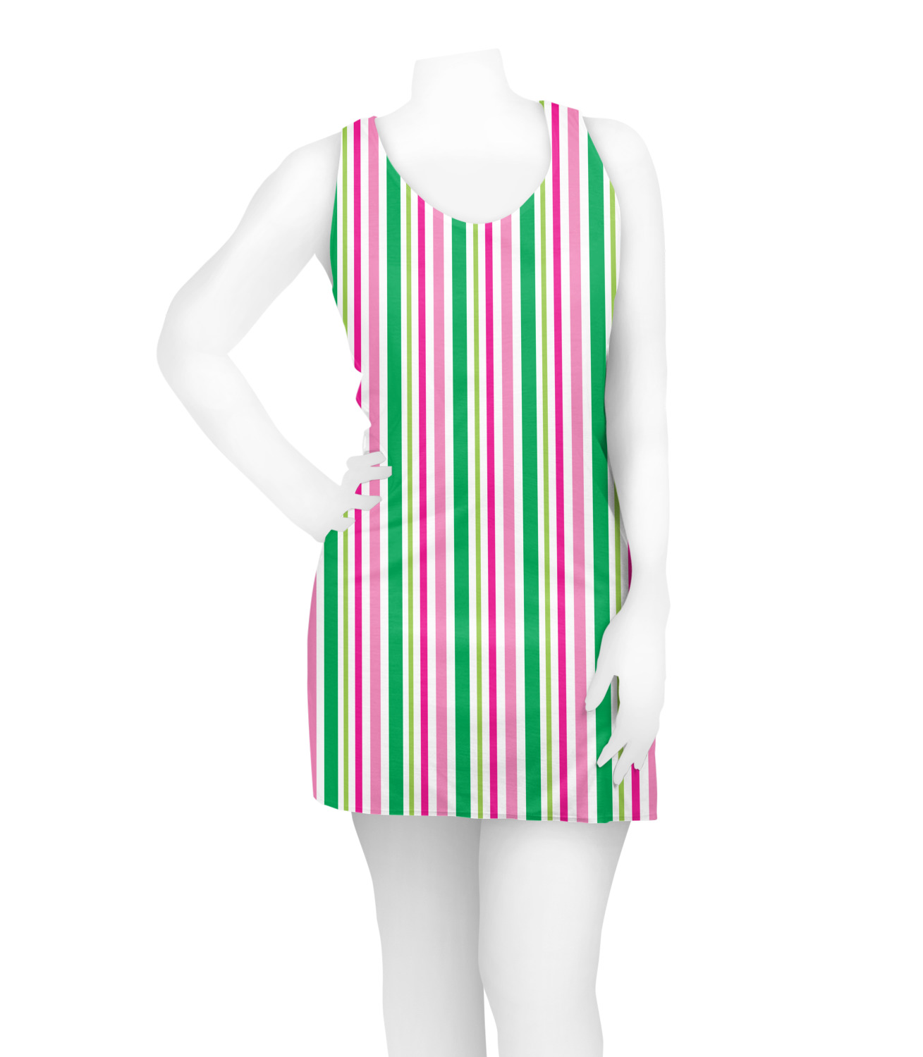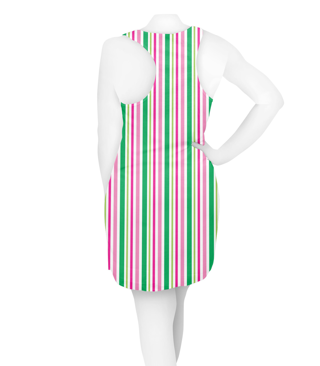 Ever want to dress up a little, but don't feel like wearing an uncomfortable dress? This racerback dress is the perfect thing! It's comfortable and adorable. You can wear it alone or with your favorite leggings. The best part? It's personalized!