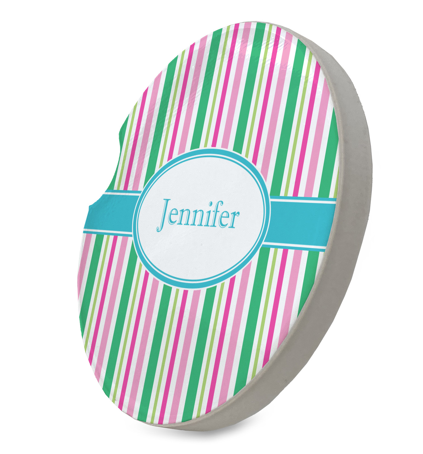 These sandstone coasters are round, robust, and feature a smoothed glossy side to exhibit your customized design. With a 2.5 inch diameter, these stone coasters will fit snugly inside most cup holders. This model also features a semi-circle shaped divot that allows for easy removal, despite the tight fit. You can purchase these car cup holder coasters in a pair, or singularly, depending on your needs.