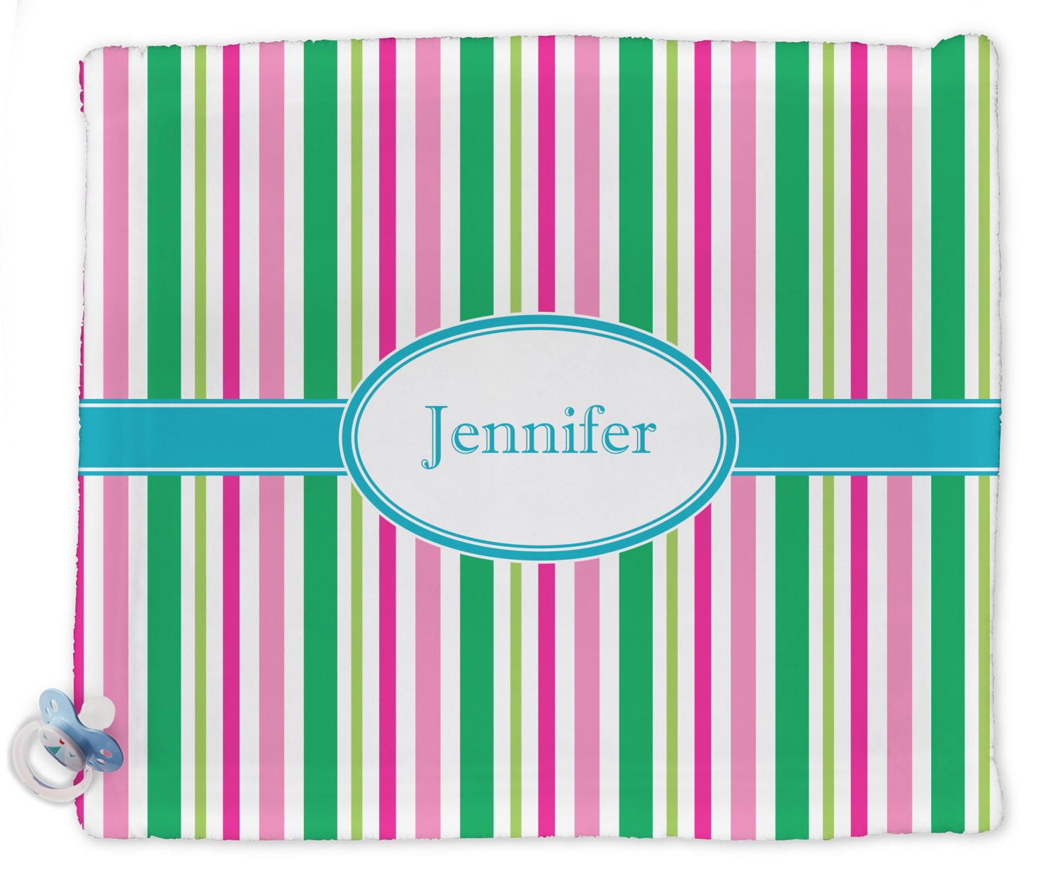 Crafted from an ultra soft fleece, these lovey blankets are the perfect, portable size to follow your child on any of his or her adventures. The plush texture also makes them ideal for naptime. Each personalized baby blanket measures at approximately 12 by 11 inches.