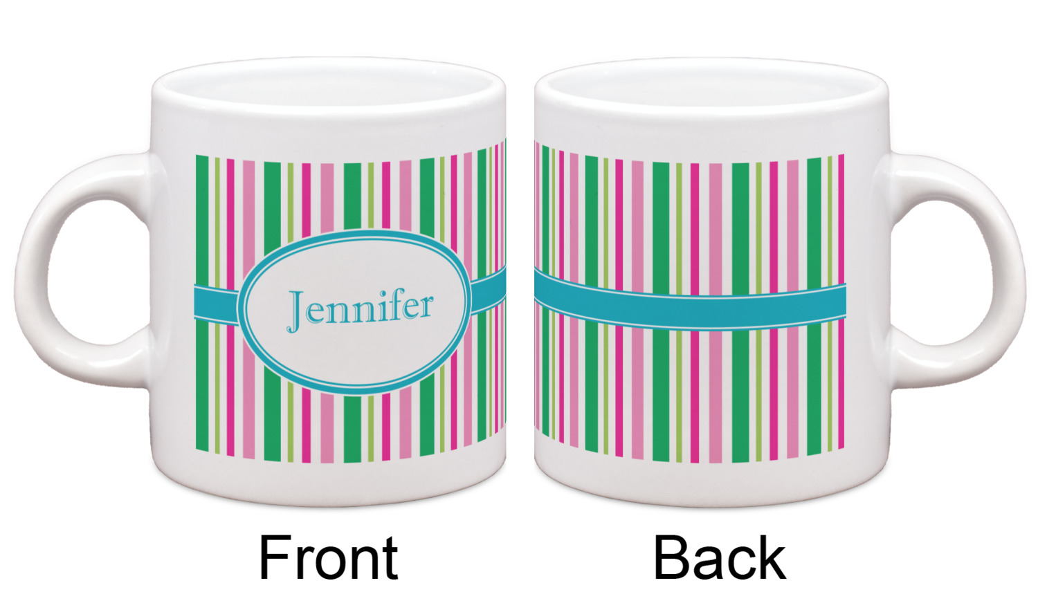 Each of our espresso mugs is a ceramic material sure to keep your drink warm. Personalize one cup for yourself, or order a set of 4! Its the perfect little gift for any coffee lover! We carry two sizes for you to personalize - 3 oz. (approx. 3.25" x 2.325" x 2.625") or 6 oz. (approx. 4" x 2.9" x 2.9"). Our 3 oz. mug is perfect for that single shot espresso while our 6 oz. mug can be your next favorite cappuccino cup holding two shots of espresso!