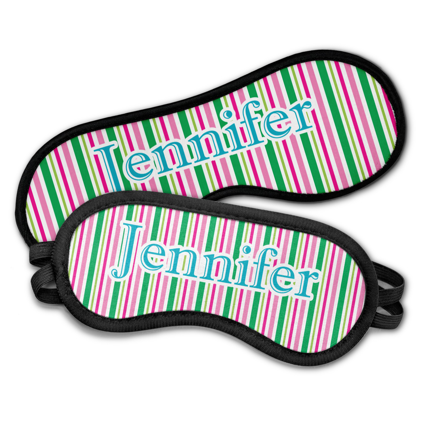 This eye mask has a super soft fleece on the back so that your face will feel snug. The front is personalized by you! There is a black elastic band that goes behind your head. The band is stretchy enough to be a one size fits most. The eye mask comes in 2 sizes: small for regular adult sizes and large for a larger area coverage. The black lining and elastic give it a nice finished look. You will never sleep or nap more comfortably than with this eye mask. These are great for napping when traveling or just at home!