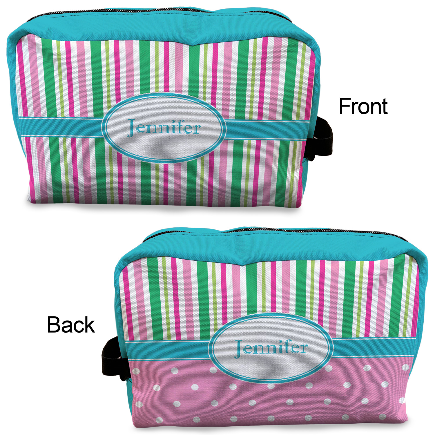 Designing a toiletry bag for yourself or as a gift can be a lot of fun. Our goal is for you to design a bag that reflects your personality and personal style. Our dopp kits are set up so you can design the front, the back and select a coordinating color for the zippered area.