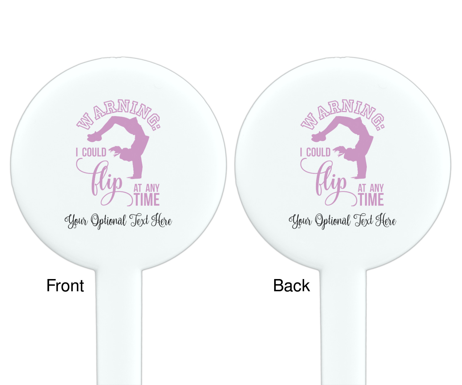 This design template is perfect for gymnasts, their friends and family. The main design features a pattern with gymnasts in pastel colors, some flowers and a white background. The optional personalization is name / text.