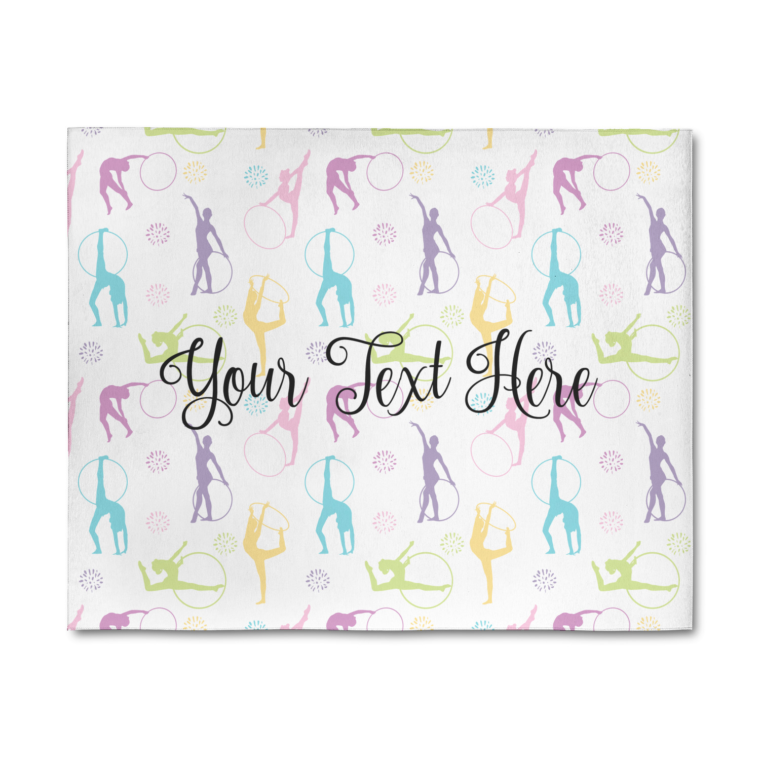This design template is perfect for gymnasts, their friends and family. The main design features a pattern with gymnasts in pastel colors, some flowers and a white background. The optional personalization is name / text.