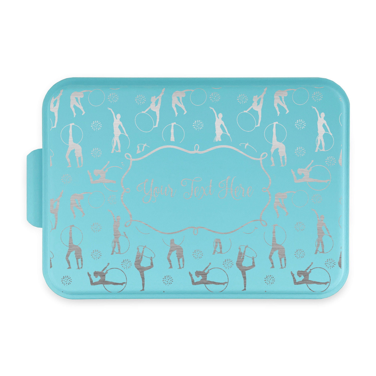 This design template is perfect for gymnasts, their friends and family. The main design features a pattern with gymnasts in pastel colors, some flowers and a white background. The optional personalization is name / text.