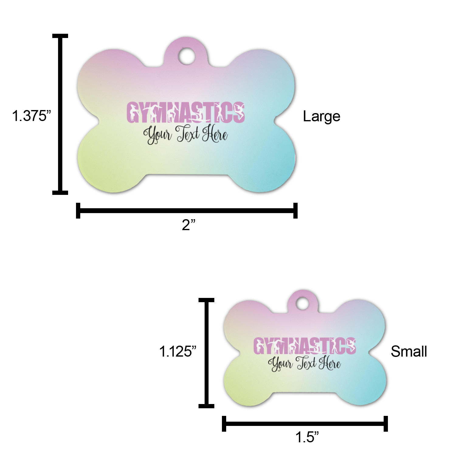 The small bone dog tag size is perfect to pair with our small dog collars, the large size pairs well with our large dog collars.