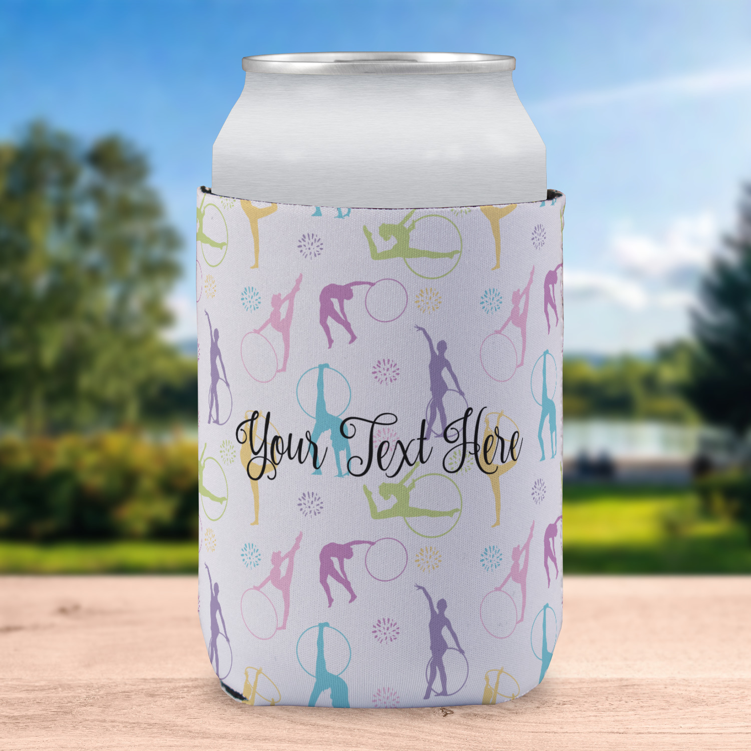 This design template is perfect for gymnasts, their friends and family. The main design features a pattern with gymnasts in pastel colors, some flowers and a white background. The optional personalization is name / text.