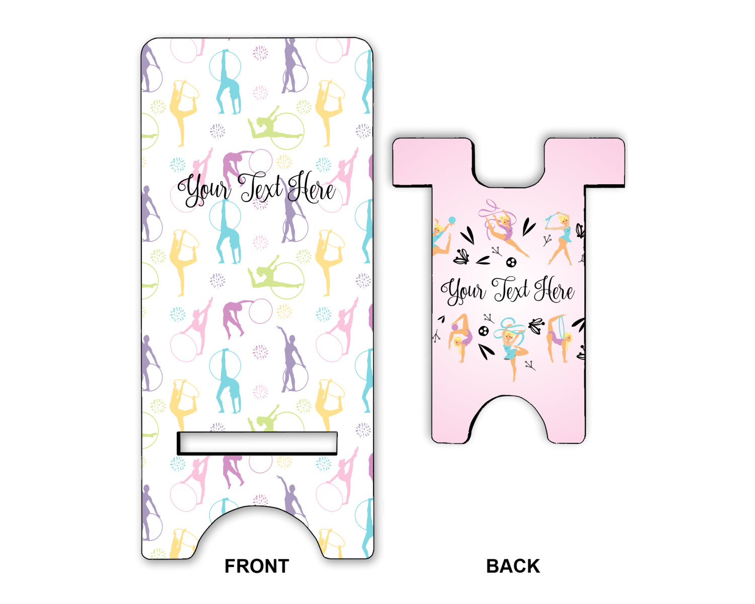 This design template is perfect for gymnasts, their friends and family. The main design features a pattern with gymnasts in pastel colors, some flowers and a white background. The optional personalization is name / text.