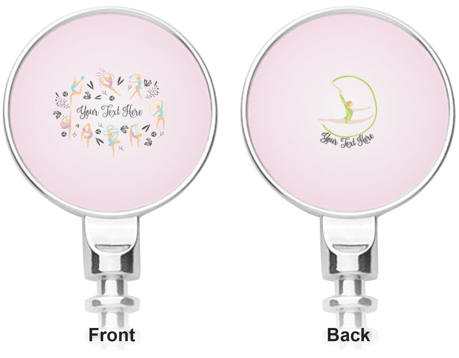 This design template is perfect for gymnasts, their friends and family. The main design features a pattern with gymnasts in pastel colors, some flowers and a white background. The optional personalization is name / text.
