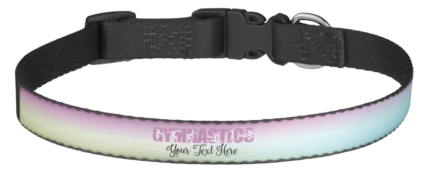 This sturdy collar, made from a durable nylon weave, will outlive your dog's episodes of excited tugging and pulling. Courtesy of its thick plastic buckle and adjuster, this collar is adjustable and accommodating of any dog. Structurally, the collar is a single piece of nylon weave that is sewn together, and features a solid metal loop where you can attach a leash or dog tag. We print and display your dog's name and pattern across the middle of the personalized dog collar.