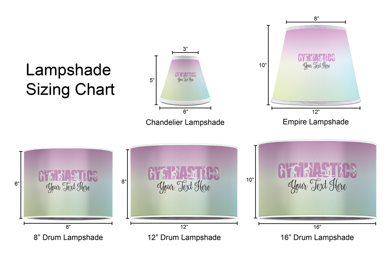 Our customized lamp shades also come in 3 different sizes: 8", 12" and 16", measuring at 8" in diameter by 6" tall, 12" in diameter by 8" tall, and 16" in diameter by 10" tall, respectively.