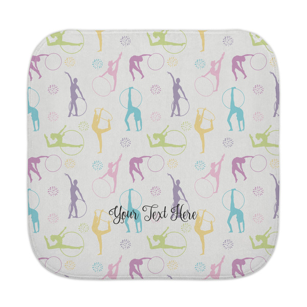 This design template is perfect for gymnasts, their friends and family. The main design features a pattern with gymnasts in pastel colors, some flowers and a white background. The optional personalization is name / text.