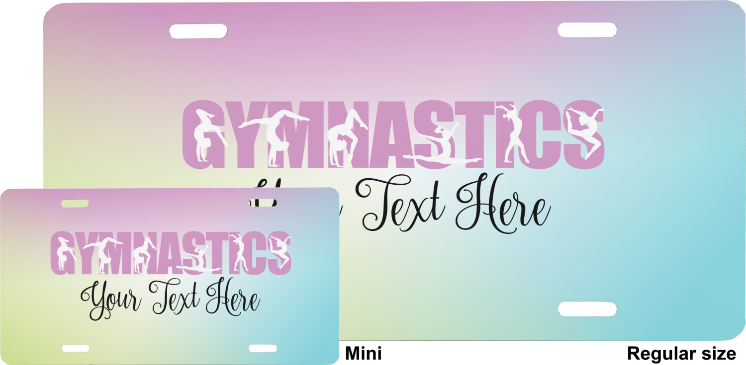 This design template is perfect for gymnasts, their friends and family. The main design features a pattern with gymnasts in pastel colors, some flowers and a white background. The optional personalization is name / text.