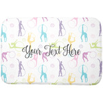 This design template is perfect for gymnasts, their friends and family. The main design features a pattern with gymnasts in pastel colors, some flowers and a white background. The optional personalization is name / text.