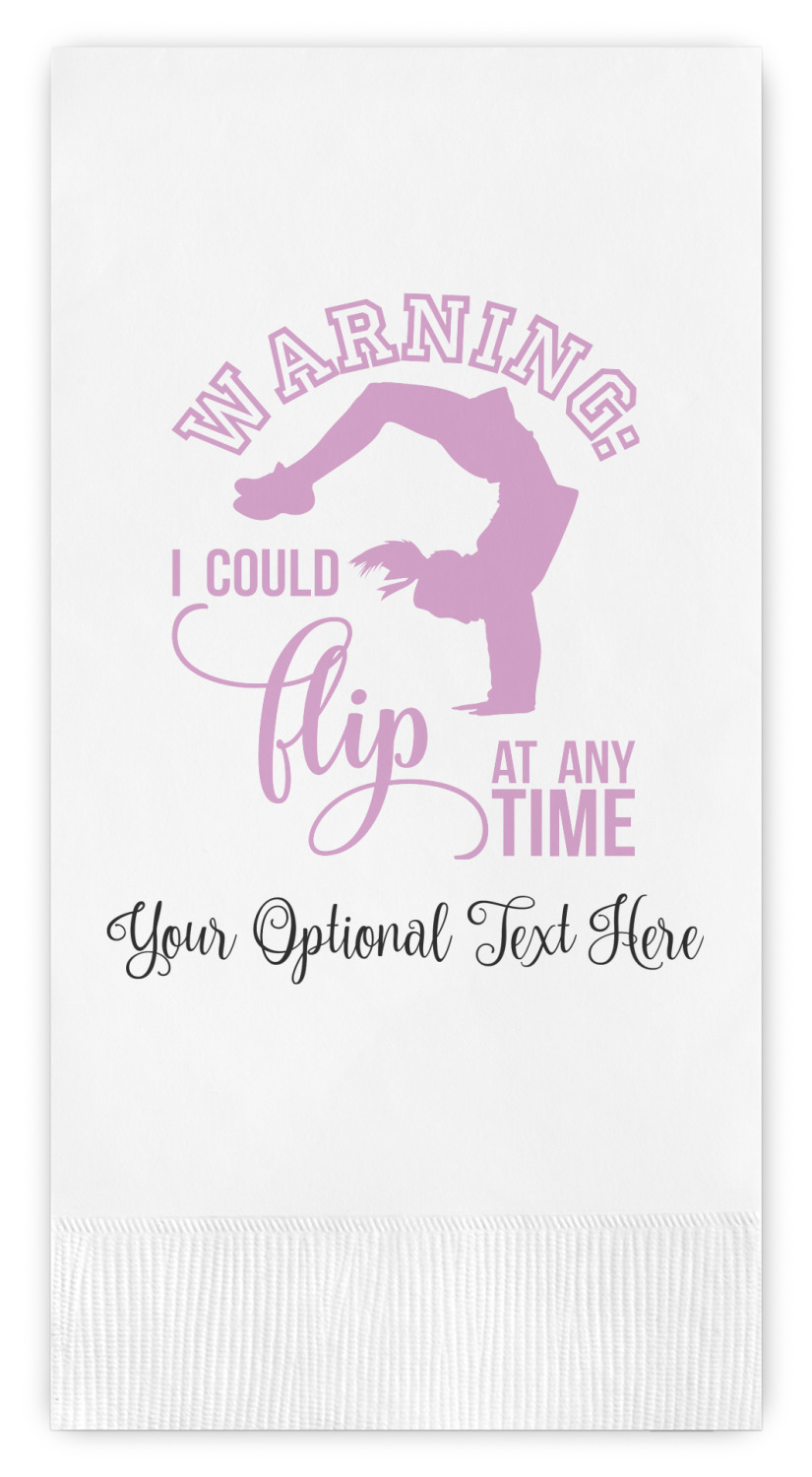This design template is perfect for gymnasts, their friends and family. The main design features a pattern with gymnasts in pastel colors, some flowers and a white background. The optional personalization is name / text.