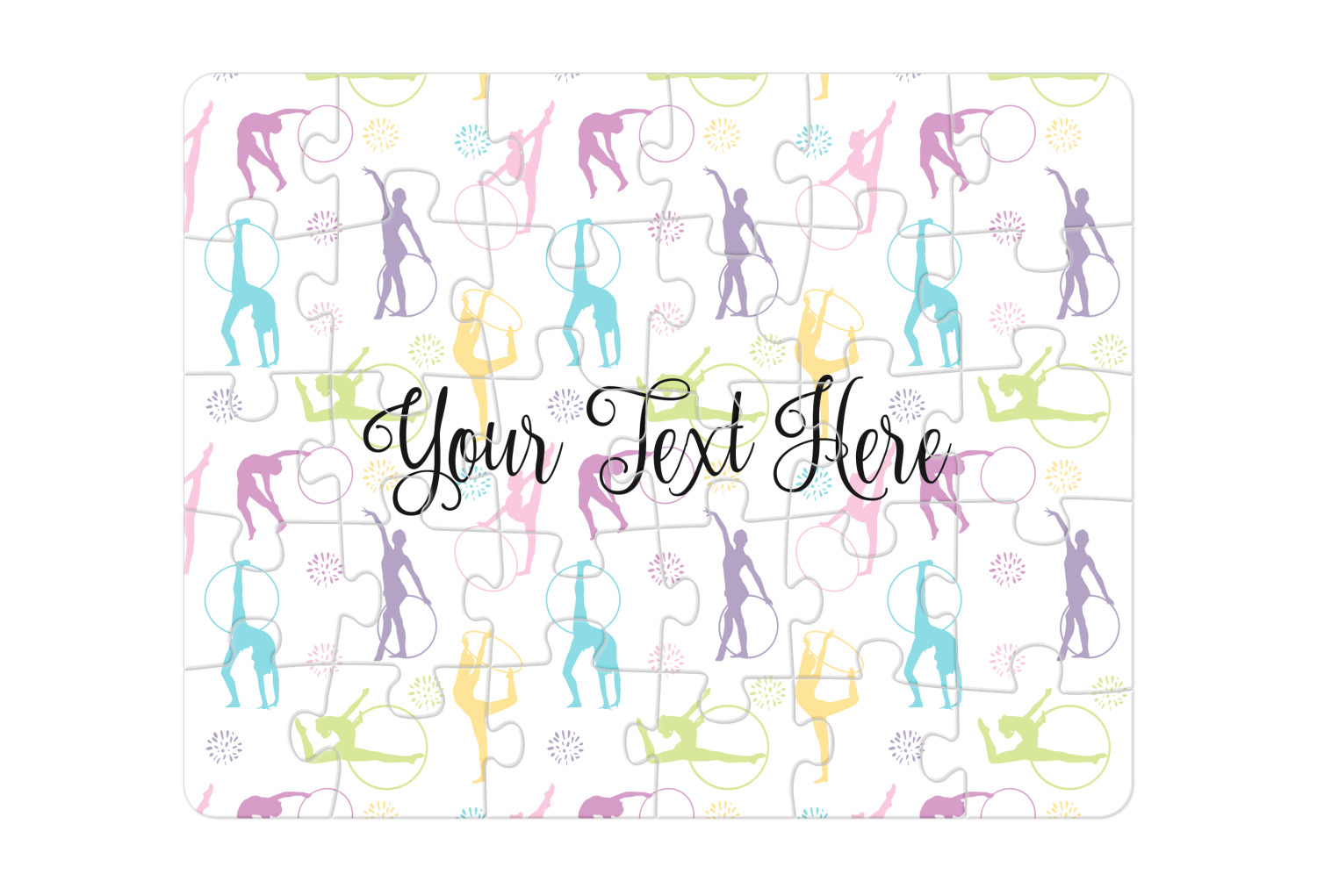 This design template is perfect for gymnasts, their friends and family. The main design features a pattern with gymnasts in pastel colors, some flowers and a white background. The optional personalization is name / text.