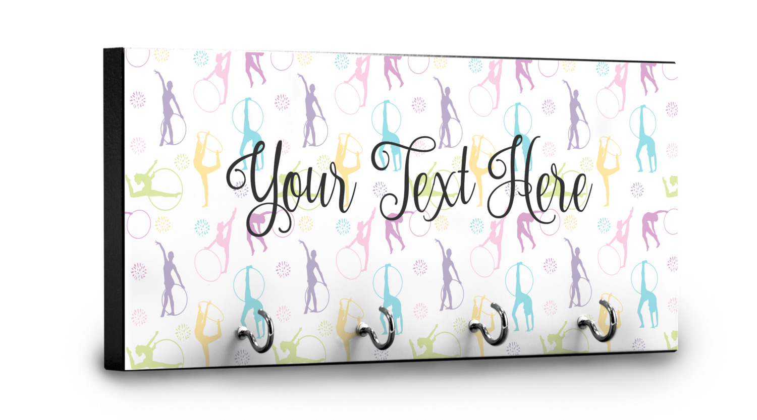 This design template is perfect for gymnasts, their friends and family. The main design features a pattern with gymnasts in pastel colors, some flowers and a white background. The optional personalization is name / text.