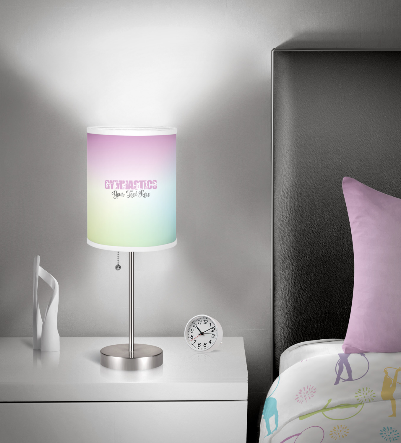 This design template is perfect for gymnasts, their friends and family. The main design features a pattern with gymnasts in pastel colors, some flowers and a white background. The optional personalization is name / text.