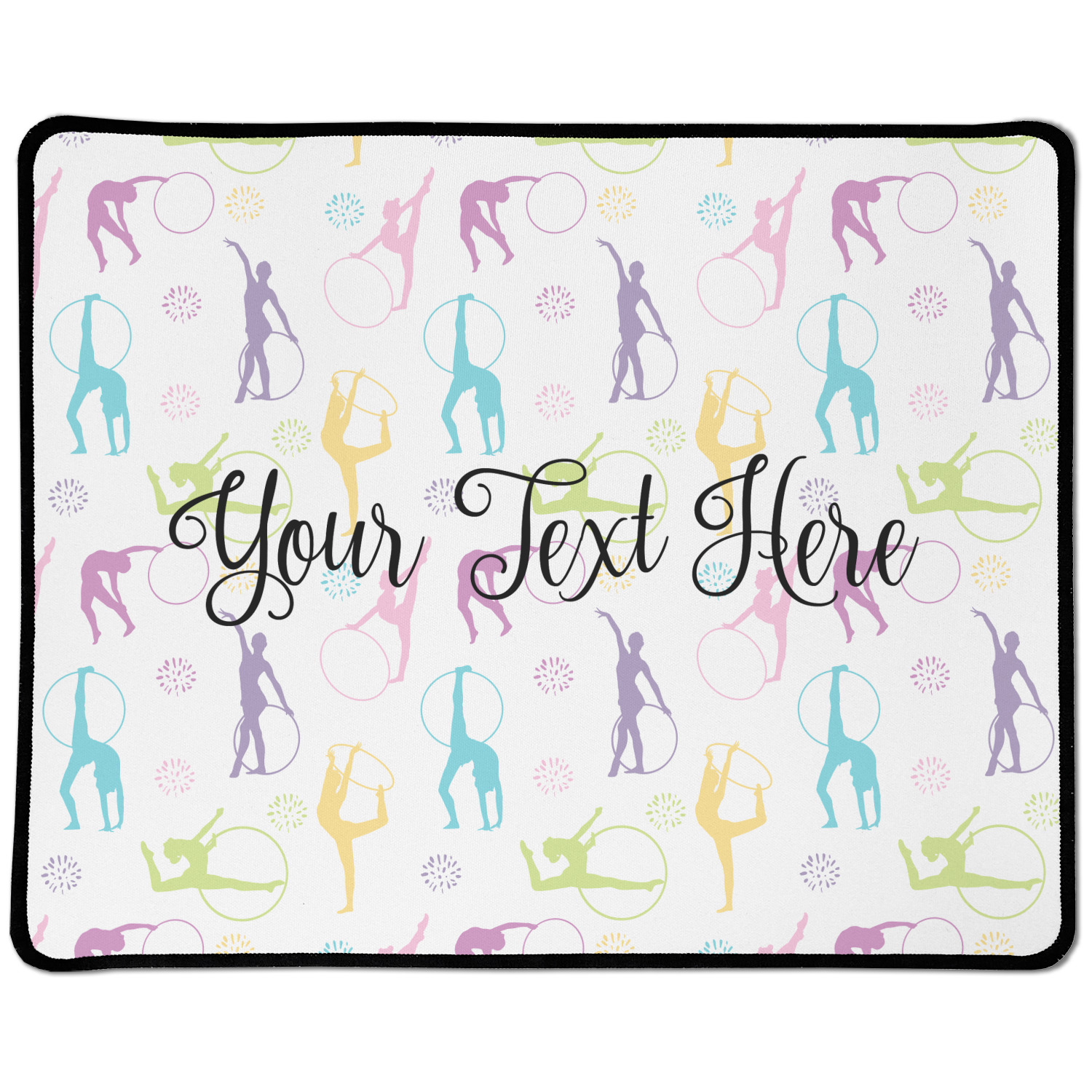 This design template is perfect for gymnasts, their friends and family. The main design features a pattern with gymnasts in pastel colors, some flowers and a white background. The optional personalization is name / text.