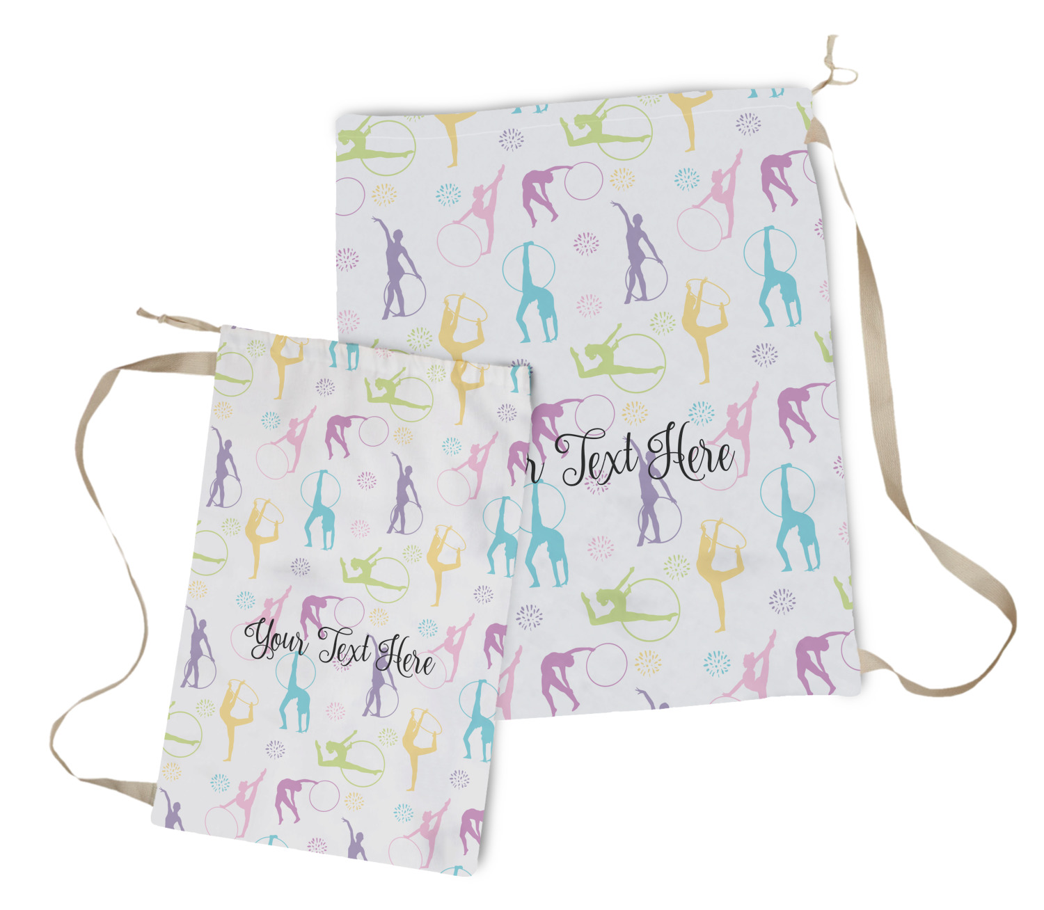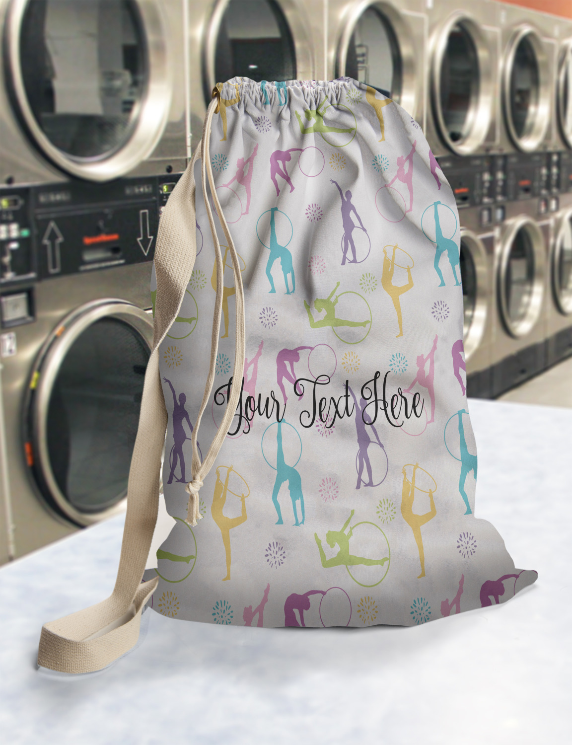 Carry your laundry in style with these customized laundry bags. Available in two sizes, featuring a natural colored woven strap and a cinch cord, these bags hold a lot of clothes or anything else you want to fit in them.