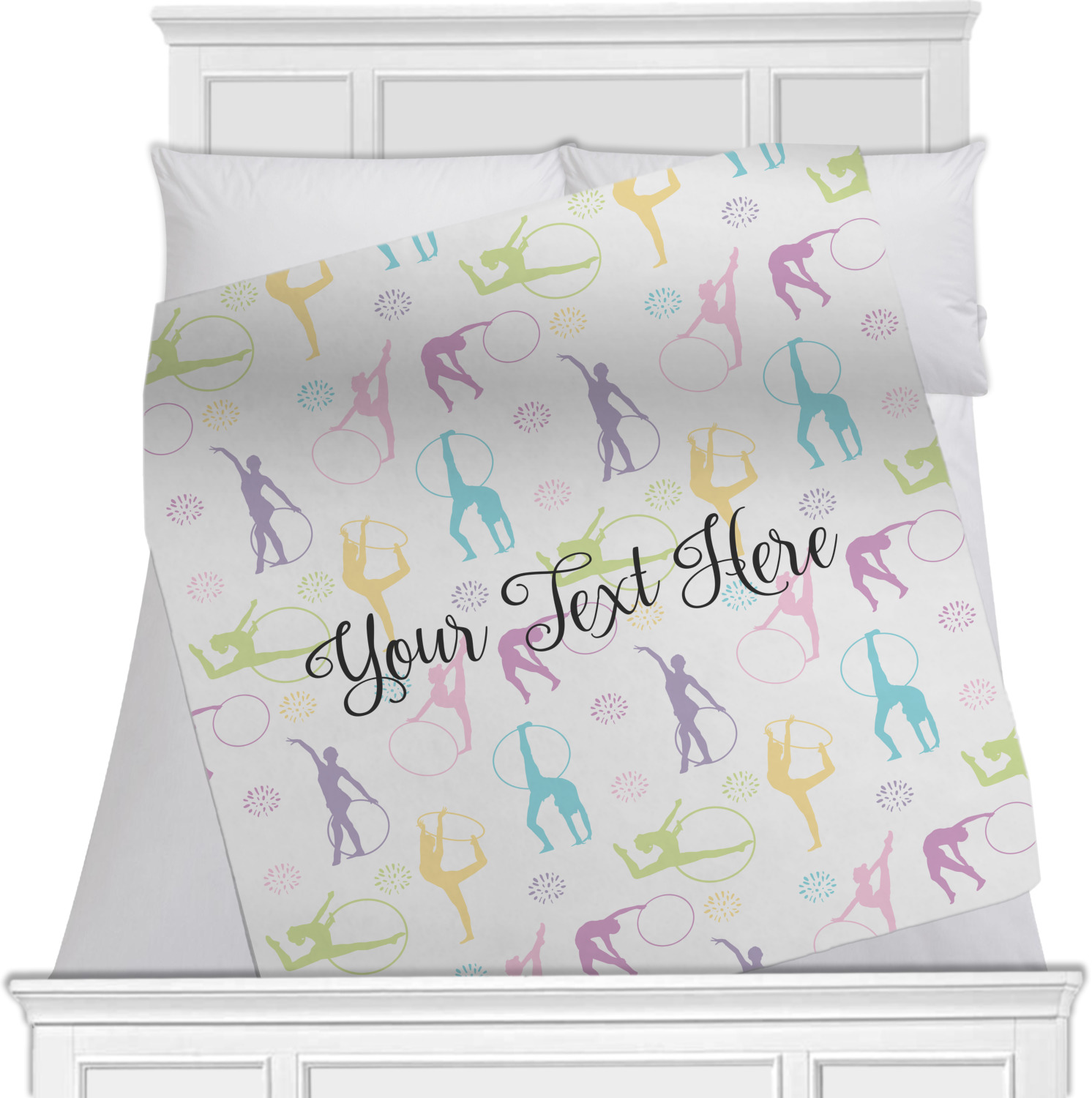 This design template is perfect for gymnasts, their friends and family. The main design features a pattern with gymnasts in pastel colors, some flowers and a white background. The optional personalization is name / text.