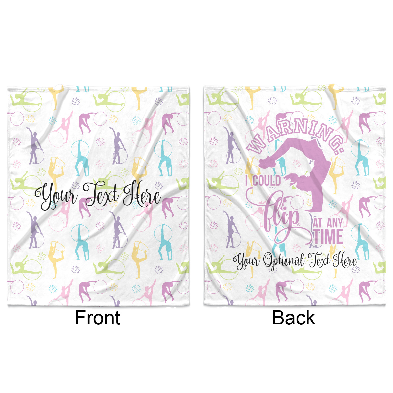 This design template is perfect for gymnasts, their friends and family. The main design features a pattern with gymnasts in pastel colors, some flowers and a white background. The optional personalization is name / text.