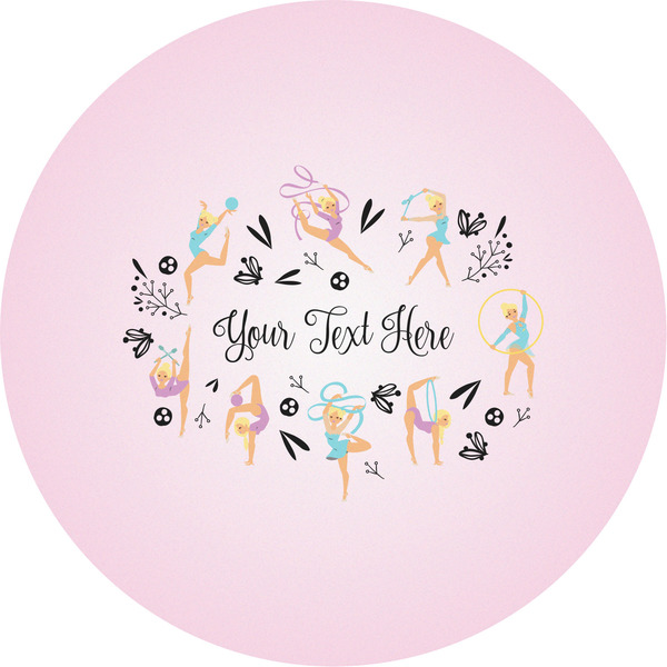 This design template is perfect for gymnasts, their friends and family. The main design features a pattern with gymnasts in pastel colors, some flowers and a white background. The optional personalization is name / text.