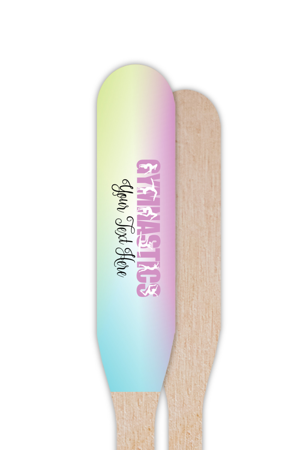 This design template is perfect for gymnasts, their friends and family. The main design features a pattern with gymnasts in pastel colors, some flowers and a white background. The optional personalization is name / text.