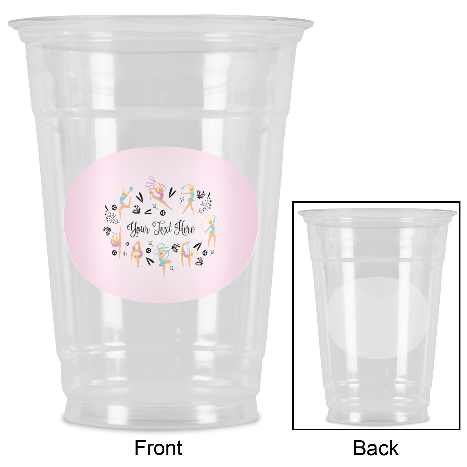 This design template is perfect for gymnasts, their friends and family. The main design features a pattern with gymnasts in pastel colors, some flowers and a white background. The optional personalization is name / text.