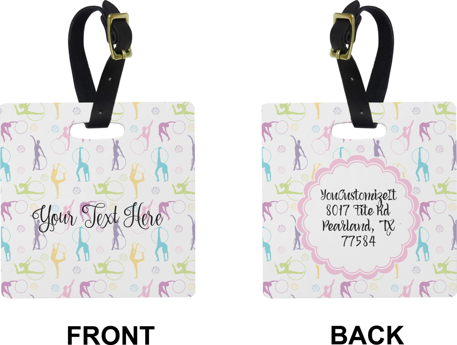 These cute luggage tags are made of a fiber-reinforced, UV-resistant plastic, making them waterproof and durable enough for both everyday use and the rugged adventures of any traveler! A leather strap with holes and a buckle is included with your purchase and can be used to attach your custom luggage tag to any suitcase, backpack, or duffel bag. You can design these travel tags as you wish; your customization will be displayed across the front, while the back will show as little or as much personal information as you want.