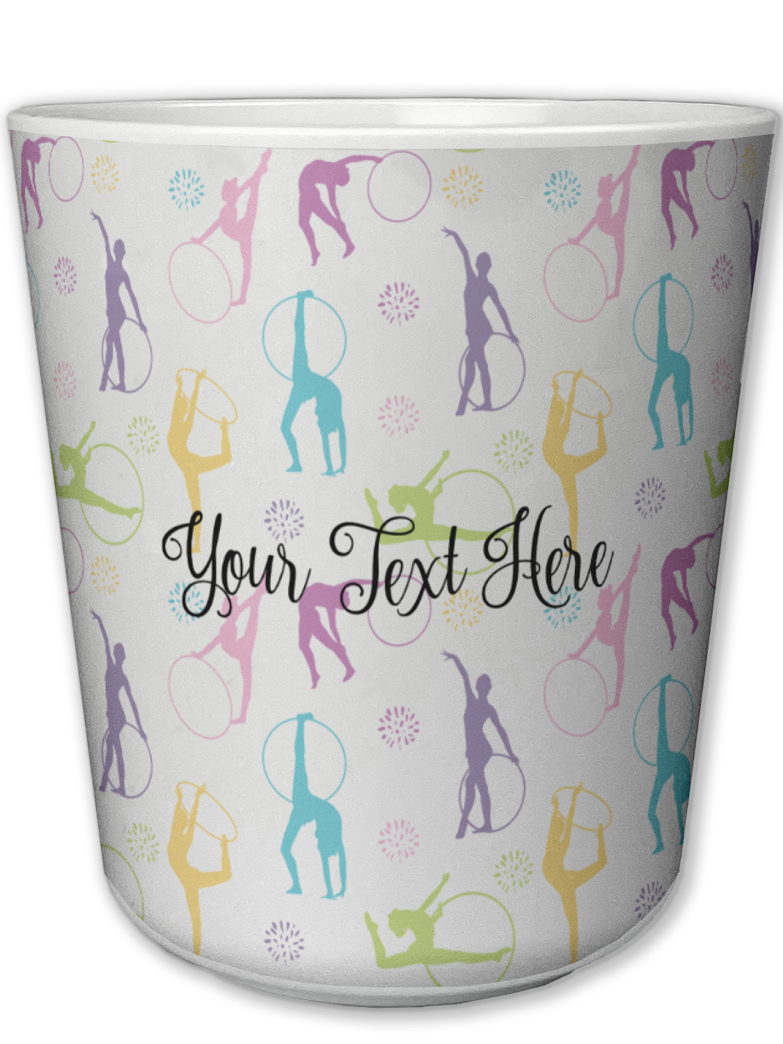 This design template is perfect for gymnasts, their friends and family. The main design features a pattern with gymnasts in pastel colors, some flowers and a white background. The optional personalization is name / text.