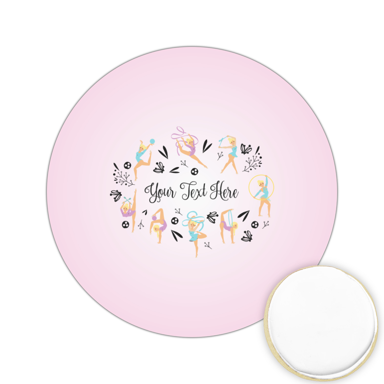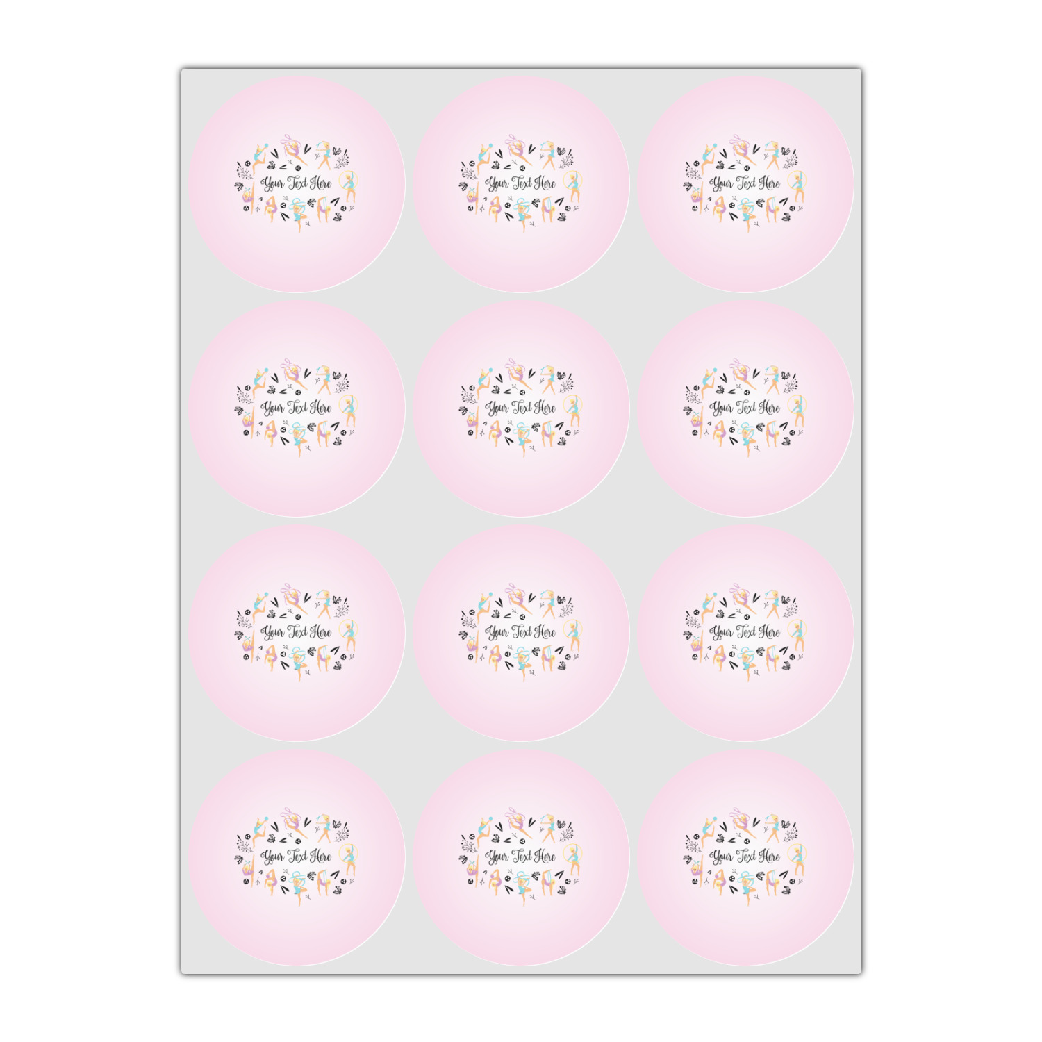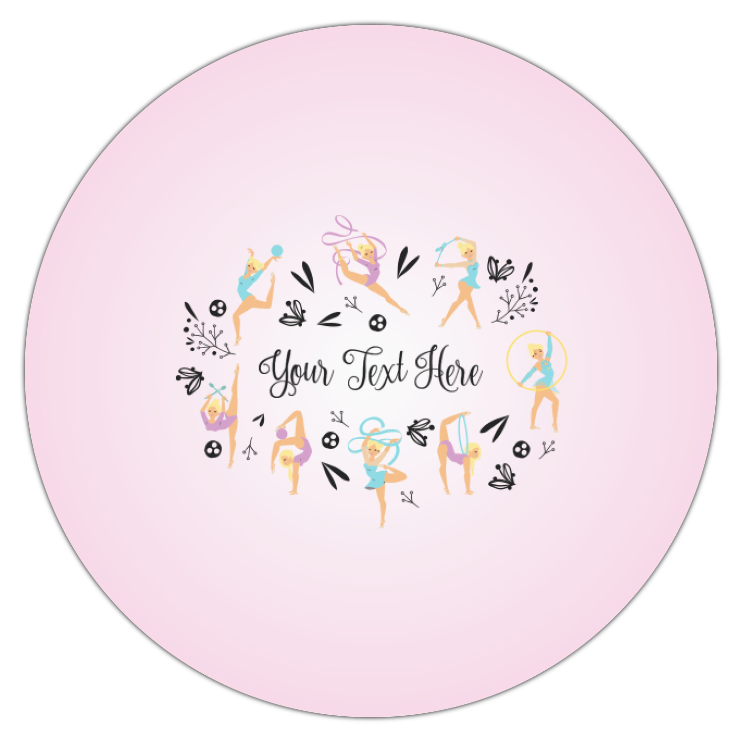 This design template is perfect for gymnasts, their friends and family. The main design features a pattern with gymnasts in pastel colors, some flowers and a white background. The optional personalization is name / text.