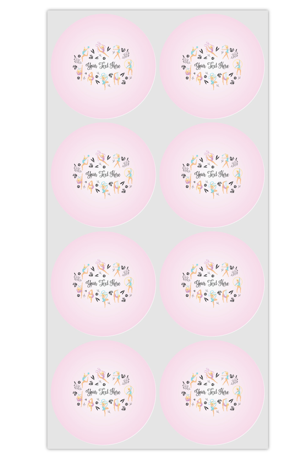 This design template is perfect for gymnasts, their friends and family. The main design features a pattern with gymnasts in pastel colors, some flowers and a white background. The optional personalization is name / text.