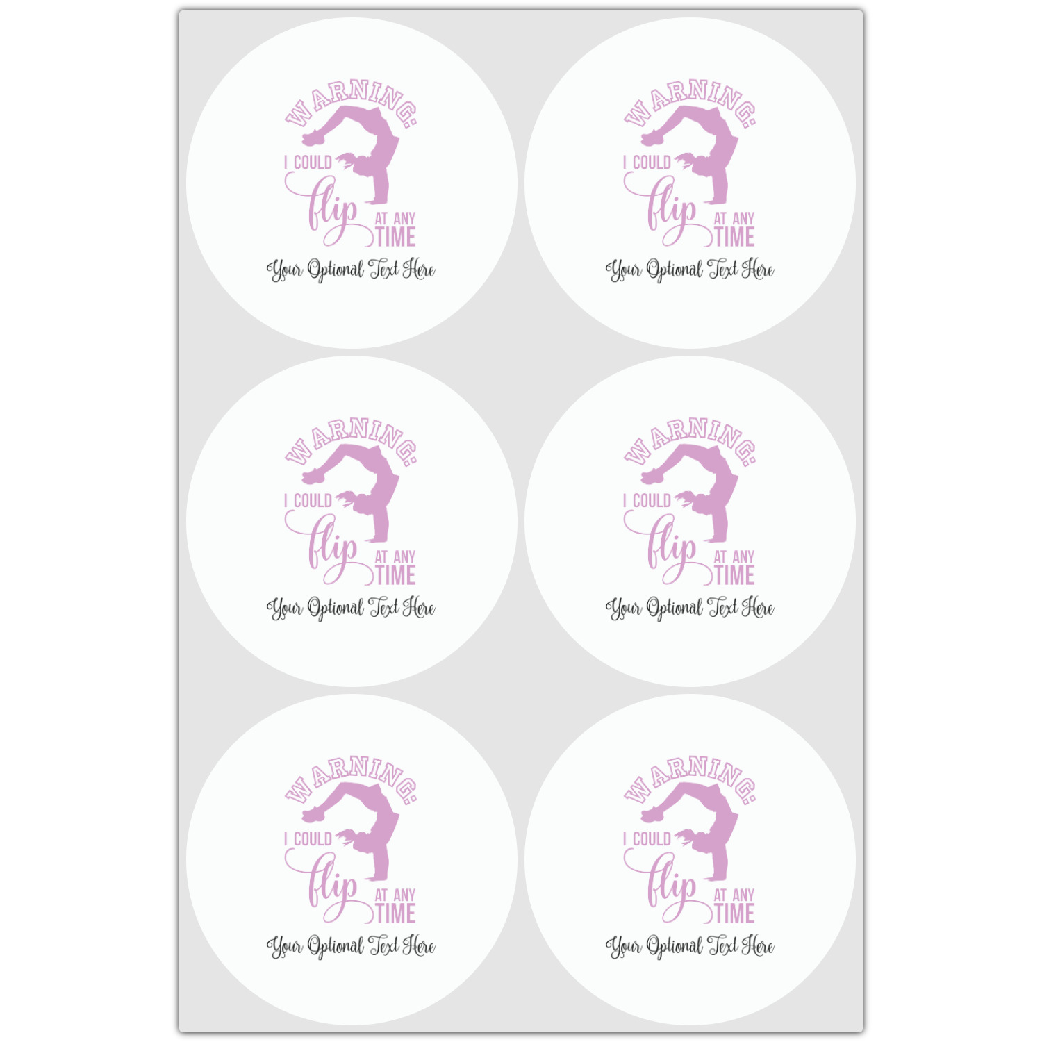 This design template is perfect for gymnasts, their friends and family. The main design features a pattern with gymnasts in pastel colors, some flowers and a white background. The optional personalization is name / text.