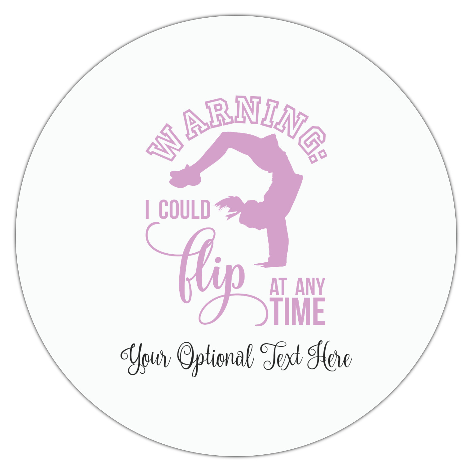 This design template is perfect for gymnasts, their friends and family. The main design features a pattern with gymnasts in pastel colors, some flowers and a white background. The optional personalization is name / text.