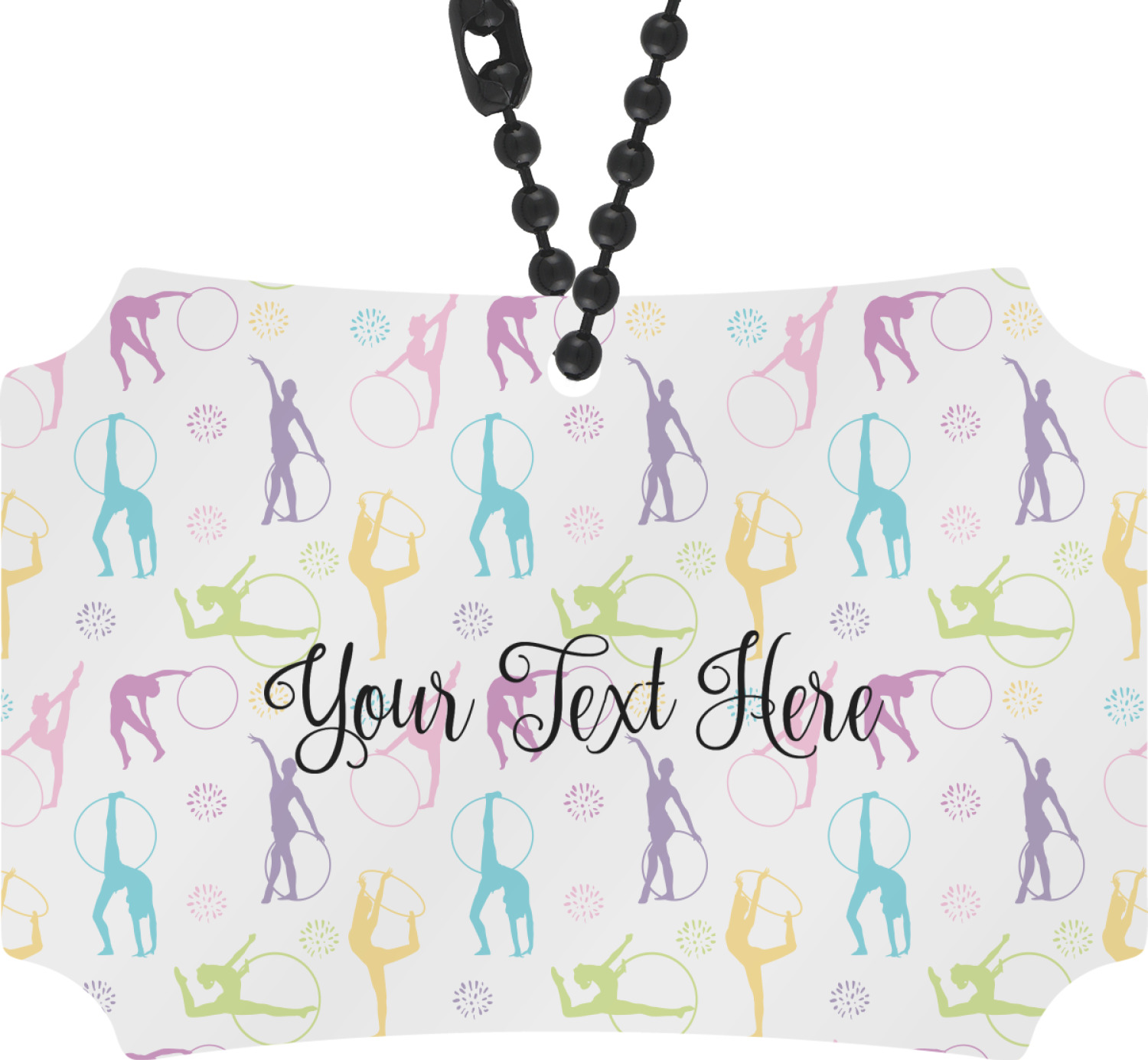 This design template is perfect for gymnasts, their friends and family. The main design features a pattern with gymnasts in pastel colors, some flowers and a white background. The optional personalization is name / text.