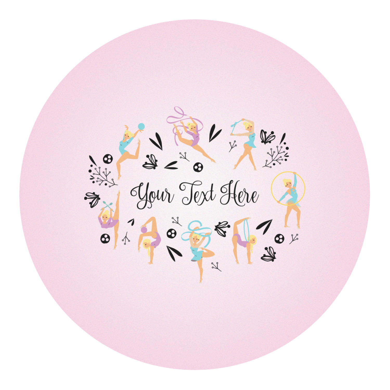 This design template is perfect for gymnasts, their friends and family. The main design features a pattern with gymnasts in pastel colors, some flowers and a white background. The optional personalization is name / text.