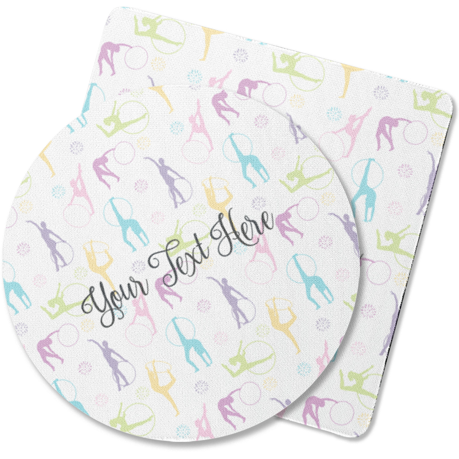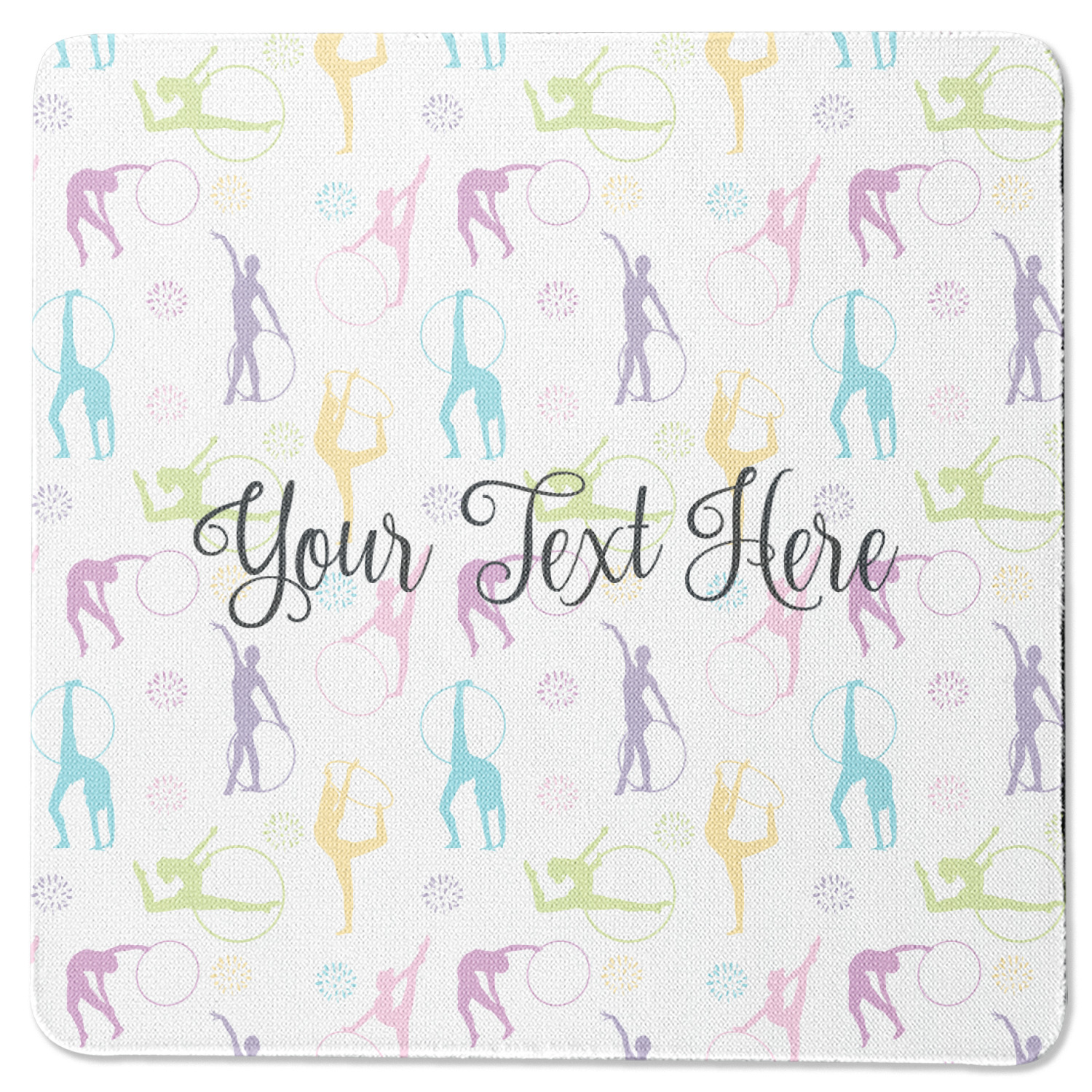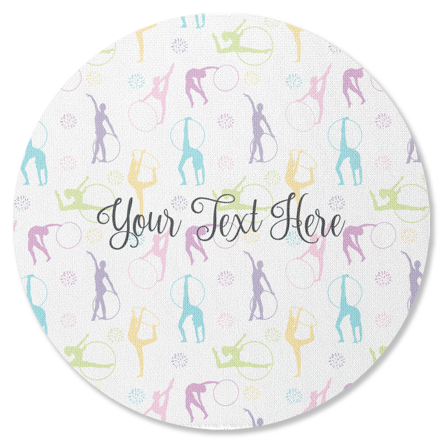 This design template is perfect for gymnasts, their friends and family. The main design features a pattern with gymnasts in pastel colors, some flowers and a white background. The optional personalization is name / text.
