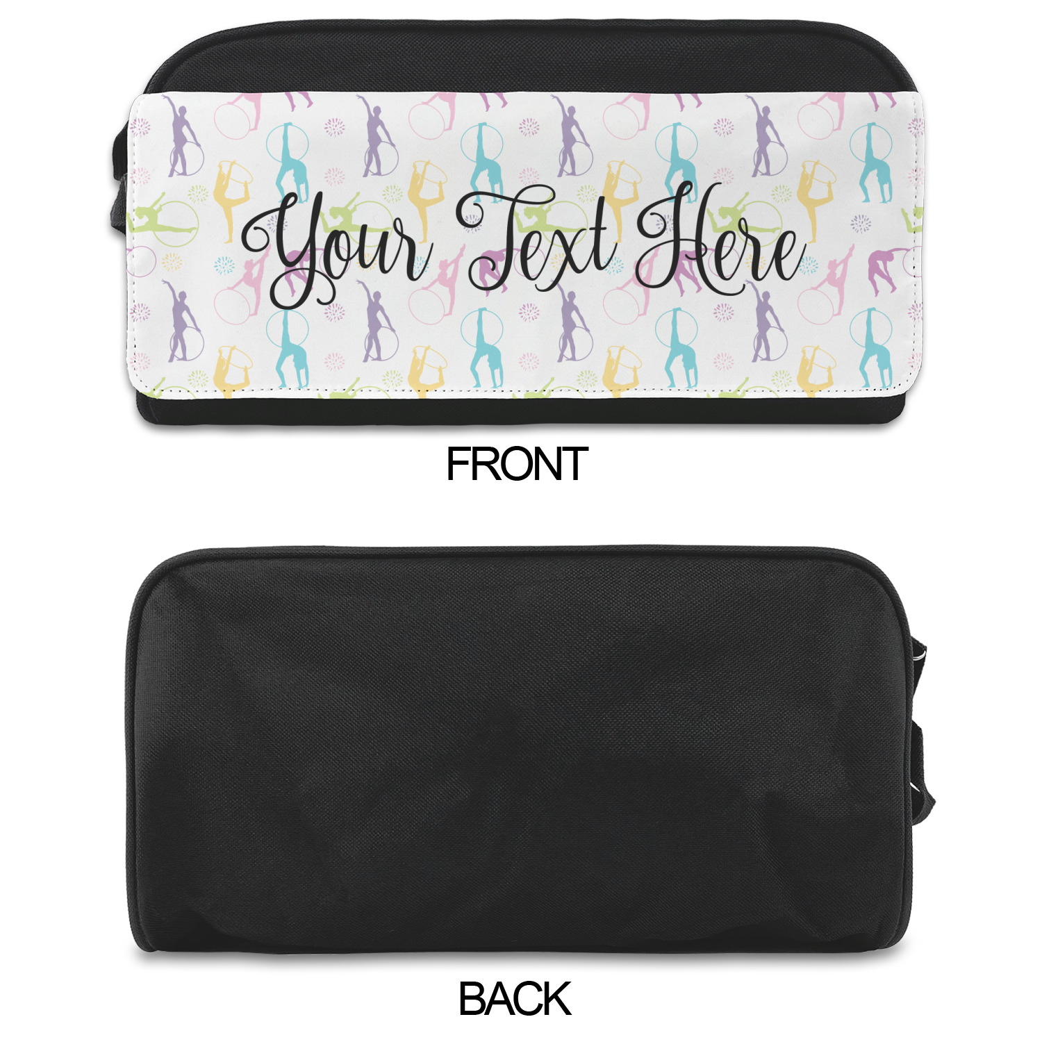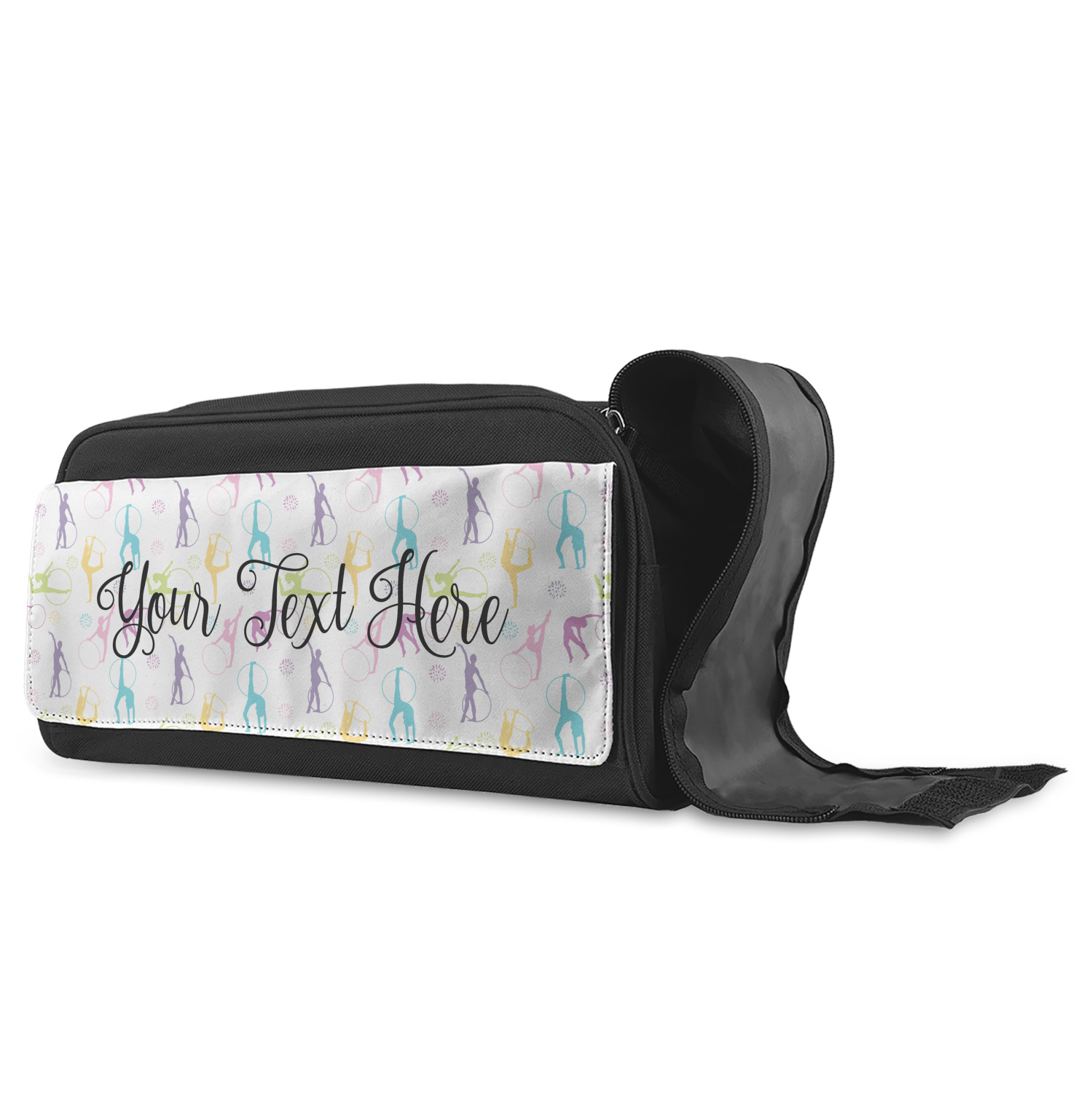 This design template is perfect for gymnasts, their friends and family. The main design features a pattern with gymnasts in pastel colors, some flowers and a white background. The optional personalization is name / text.