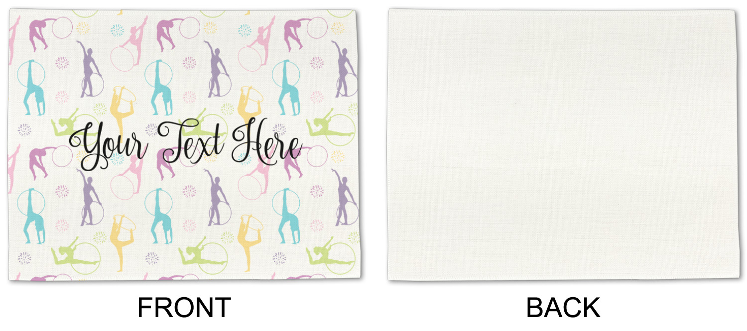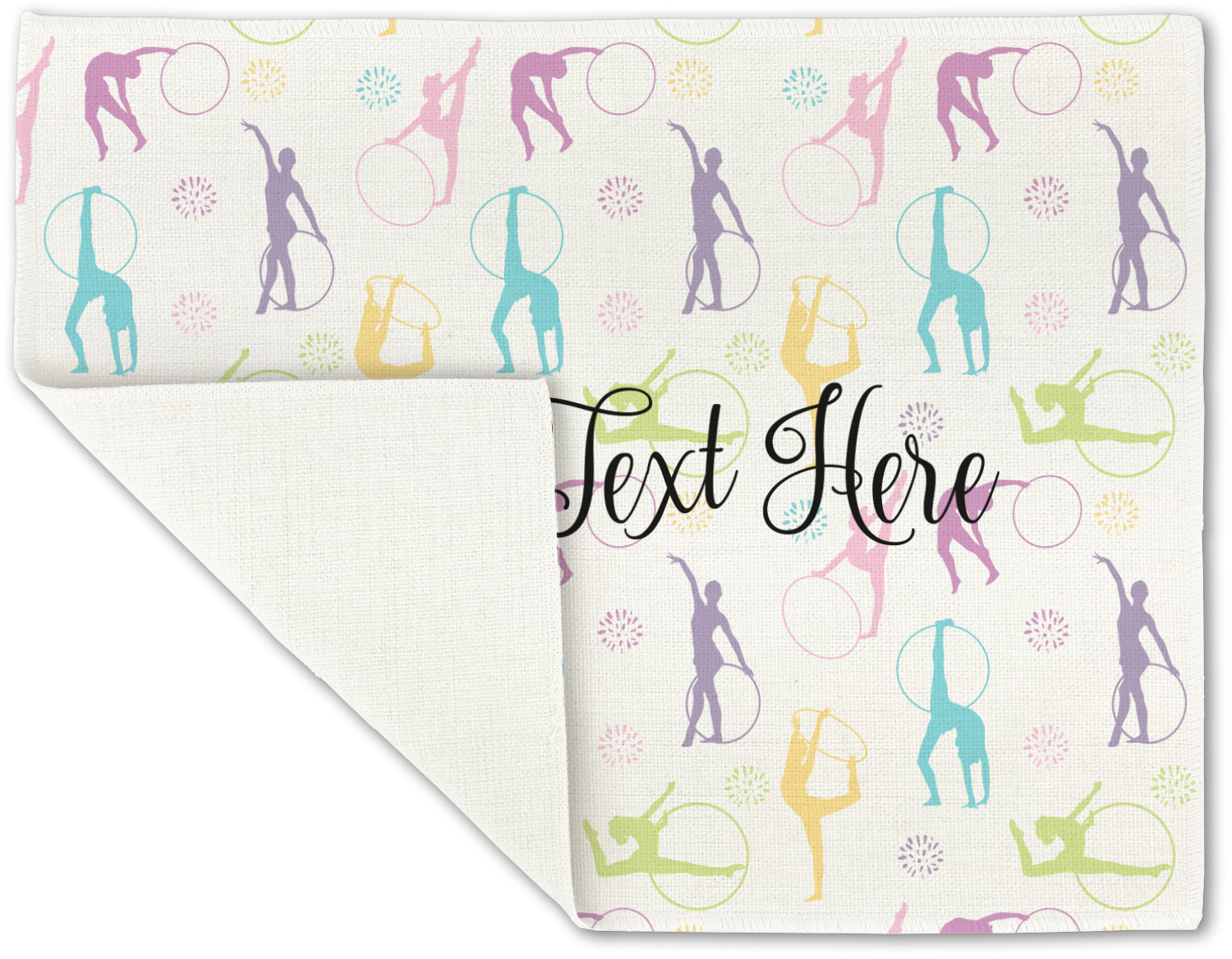This design template is perfect for gymnasts, their friends and family. The main design features a pattern with gymnasts in pastel colors, some flowers and a white background. The optional personalization is name / text.