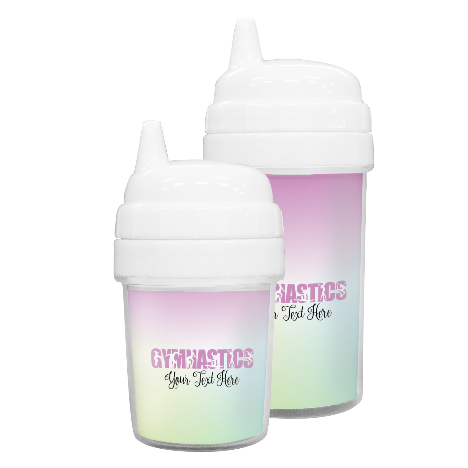 Our toddler cups are free of BPA, and have a twist-open lid so that you can easily fill and clean these cups for your young ones. Each cup also comes with a sippy nozzle to reduce spills. We offer these custom sippy cups in two different sizes; we have a baby sippy cup that holds 5 ounces, and a toddler sippy cup that holds 10 ounces. Your customization is printed on a premium glossy media insert that is placed within these toddler drinking cups.