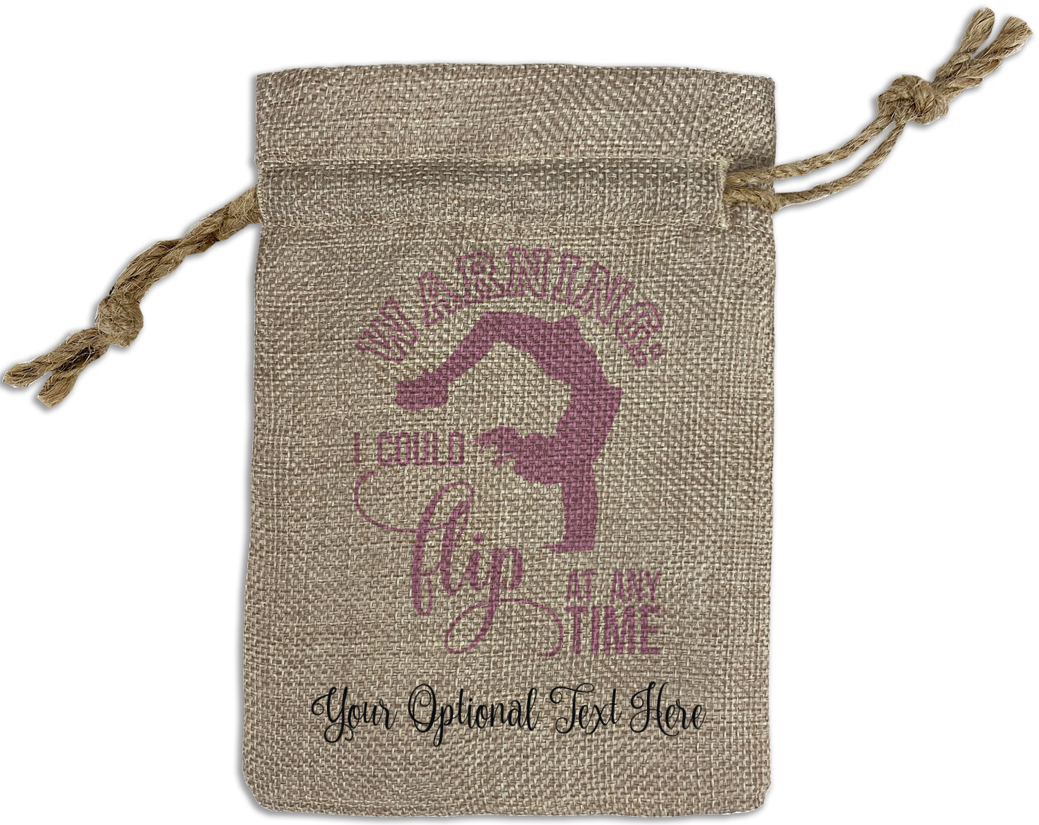 We sell our Burlap Gift Bags in 3 variant sized bags. Made with burlap polyester, each personalized bag can be secured with a twine drawstring pull. Your custom design is available to print on one side or both sides - completely up to you! The sizes of the bags measure approximately 4.5" x 6.5" for the smallest size, 6.5" x 8.0" for the medium size, and 6.5" x 13.5" for the large-sized bag.