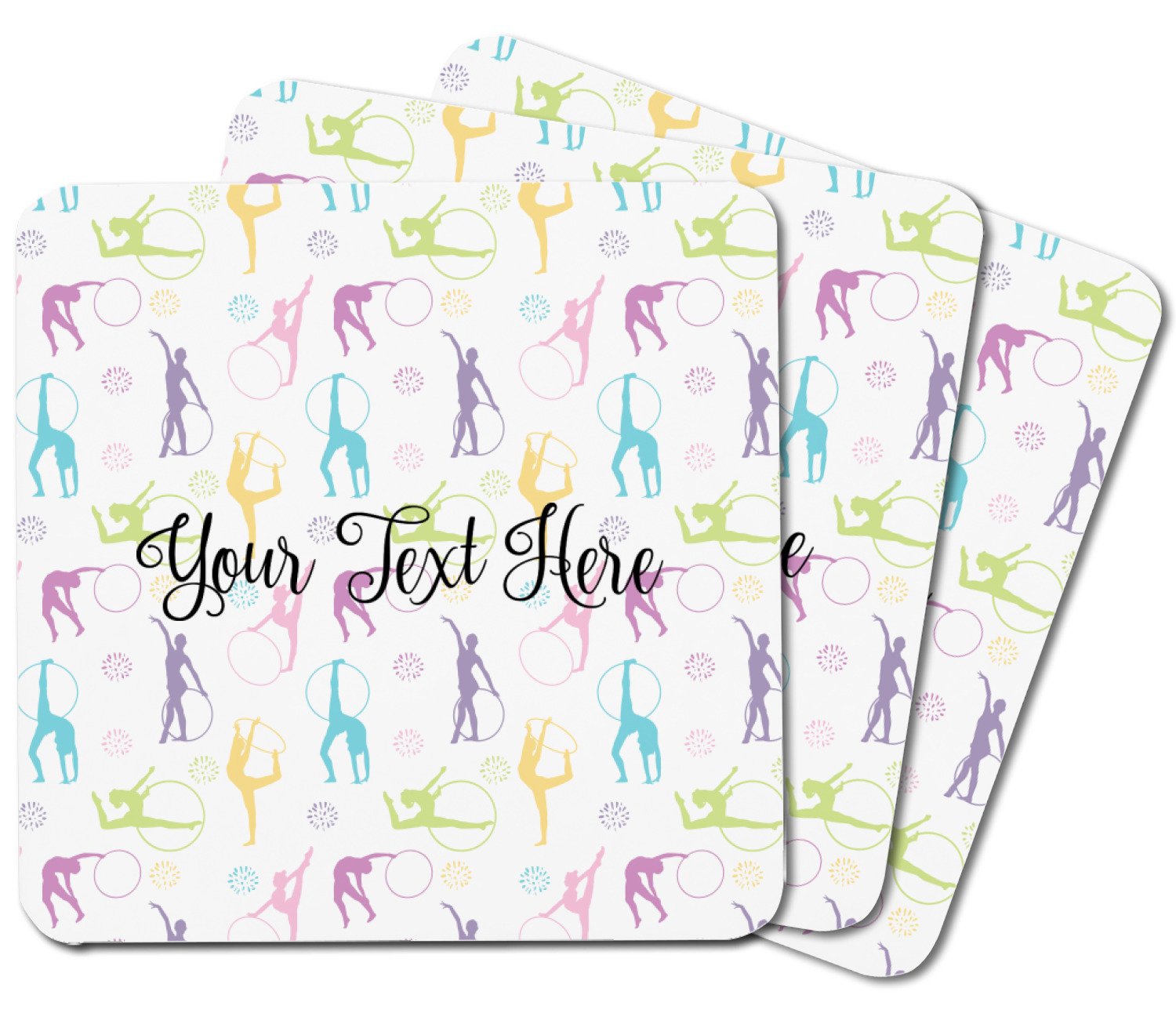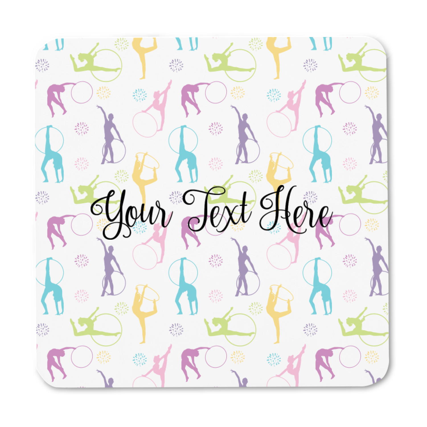 This design template is perfect for gymnasts, their friends and family. The main design features a pattern with gymnasts in pastel colors, some flowers and a white background. The optional personalization is name / text.