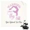 This design template is perfect for gymnasts, their friends and family. The main design features a pattern with gymnasts in pastel colors, some flowers and a white background. The optional personalization is name / text.
