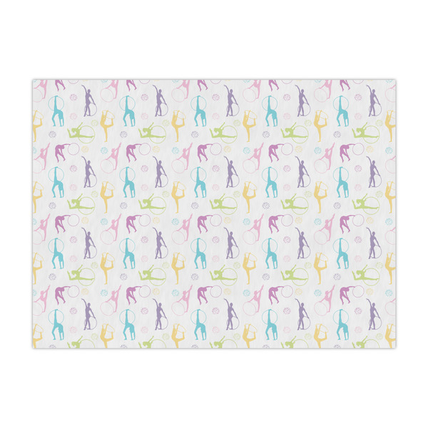 This design template is perfect for gymnasts, their friends and family. The main design features a pattern with gymnasts in pastel colors, some flowers and a white background. The optional personalization is name / text.